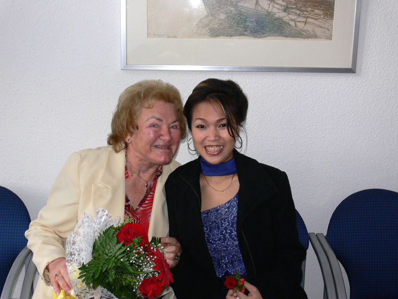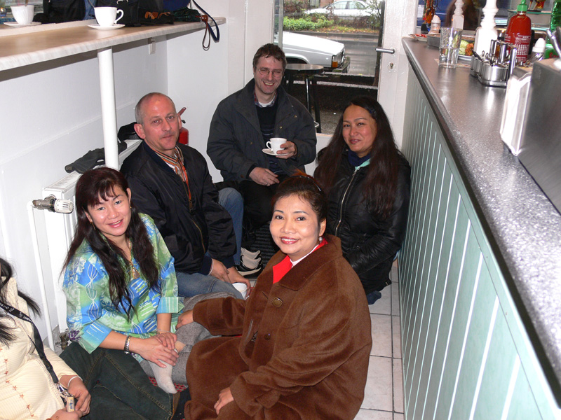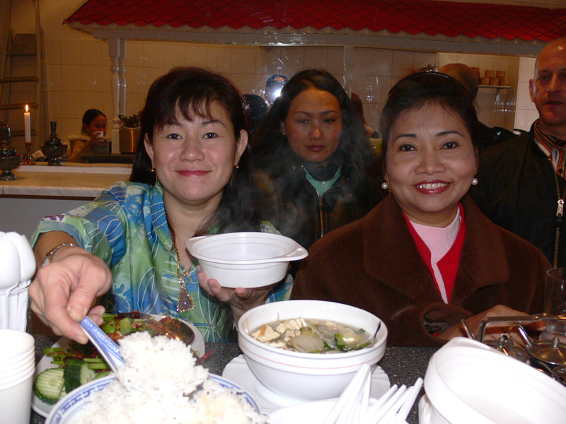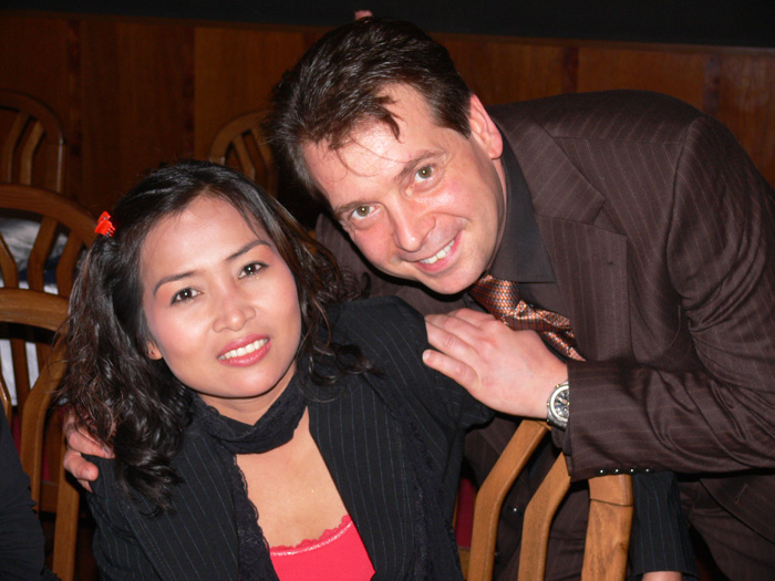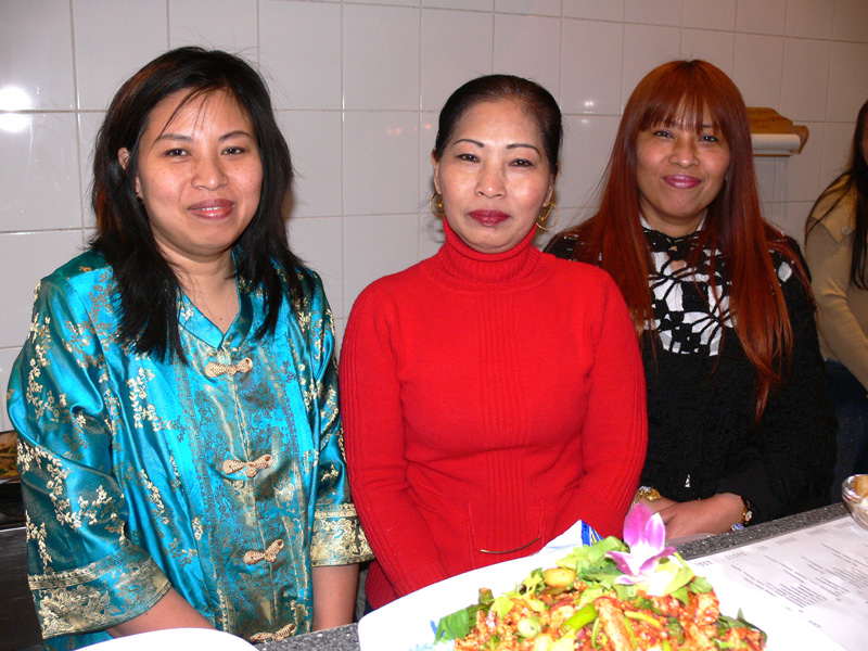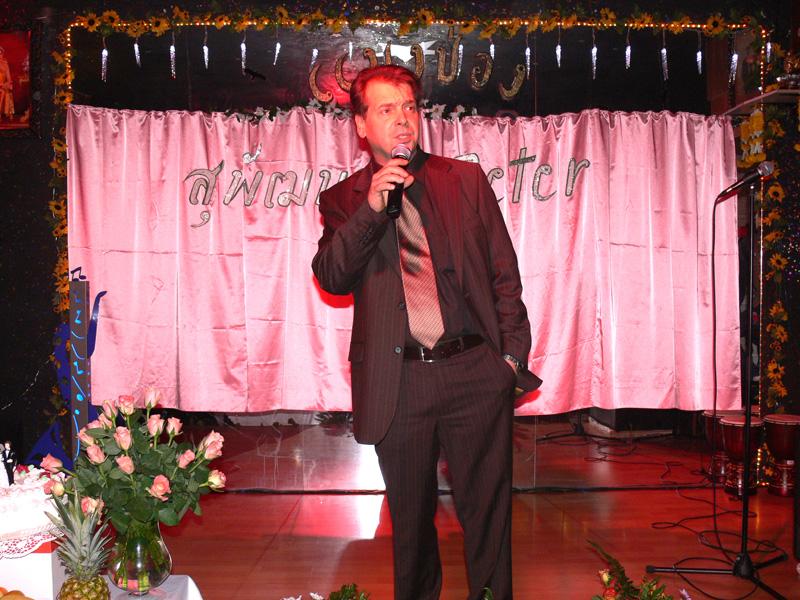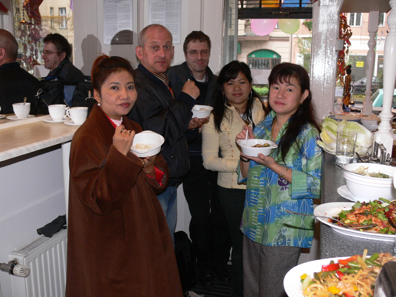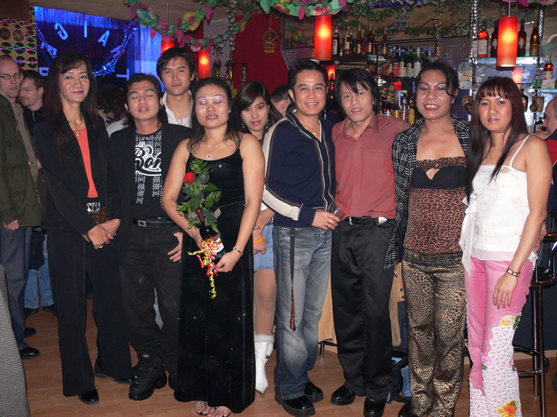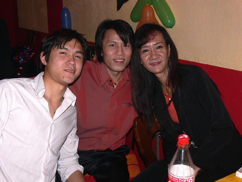 Alle Wetter! Es geht doch noch was! Wenn Lilly ihren Geburtstag feiert, dann zieht die R.C.A.-Chefin alle Register. Das Berliner Thai-Musik-Café in der Schierker Straße war am 23. November so rappelvoll wie schon lange nicht mehr. Und das mitten in der Woche. Wie zu guten alten Zeiten wurde eine tolle Party gemacht. Die Show war dank Toi nebst seinen Comedy-Mannen abwechslungsreich. Edd sang leidenschaftlich. Sogar Lek und Sombat vom Scorpion waren gekommen. Letzter hatte immerhin einen kleinen Superstar im Gefolge. Das Gejohle der Thais war groß. Genau wie das ansprechende Thai-Buffet (natürlich frei). Wer noch? Kwan von der THAIGER-Bar, Dung Ding und Dia (beide Bangkok). Joe freute sich, weil Bee und Djem auch da. Bancha auch mit einem Tisch. Und Lilly, ganz in Weiß, war glücklich. Mathias Heinrich