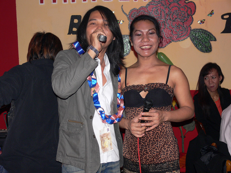 Das 2. Geburtstagskind ist der Green Mango Betreiber Nils, der heute als DJ auftrat und für Stimmung sorgte. Dass in der Karaoke Bar viel gesungen wird, bestätigte sich auch diesmal. So gab bei voll besetztem Haus auch der Hamburger Mike seine Elvis-Songs zum Besten. Mike lebt in Phuket und urlaubt hier ein wenig. Punkt 24 Uhr klirrten zum Happy Birthday die Gläser. Geschenke wurden überreicht, Hände geschüttelt. Die Party steigerte sich zum Höhepunkt ohne Ende.