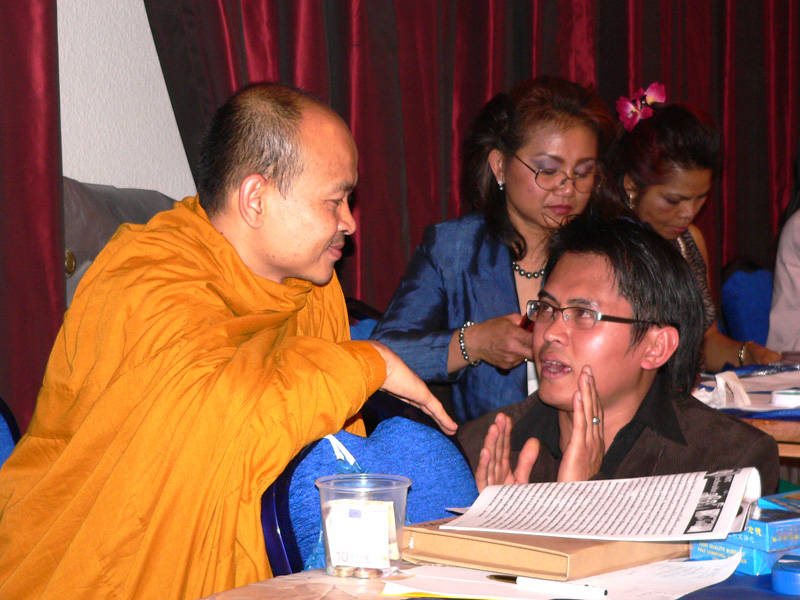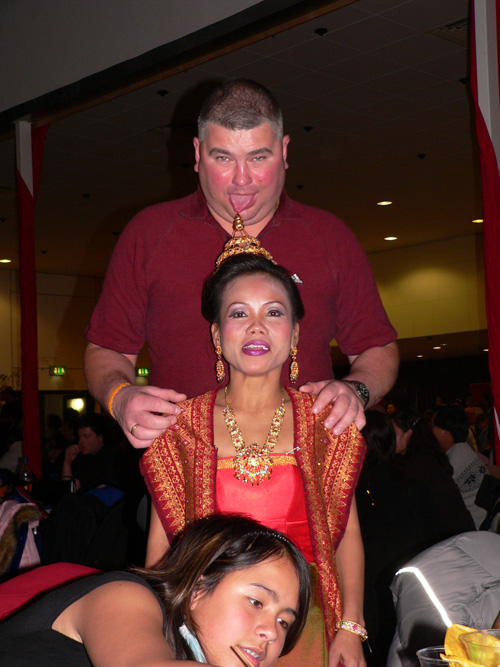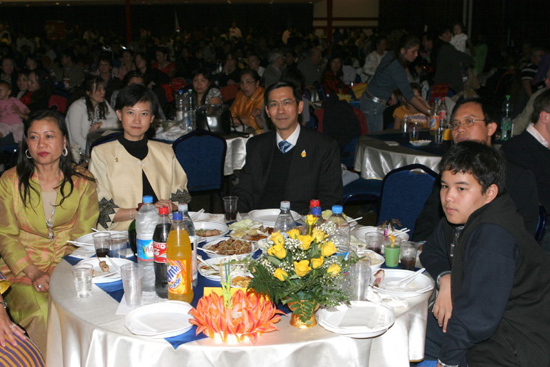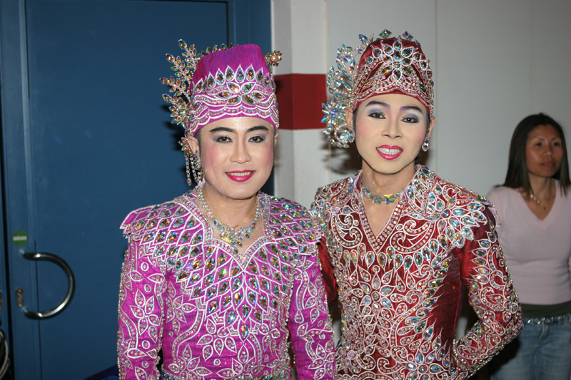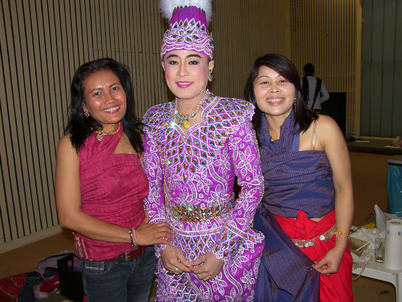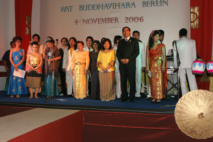 Auffällig war diesmal die große Zahl der Tanzgruppen und Laien-Künstlern, die sich nacheinander auf der apart gestalteten Bühne ablösten. Fast alle Berliner Musik Cafés waren auch mit von der Party: Das Scorpion (Sombat), R.C.A. (Toi) sowie Thai Thek (Tum) und die Thaiger Bar (Kwan). Es war schon eine Leistung, wie Sombat beim kurzzeitigen Ausfall der Musikkonserve das Königslied a capella anstimmte und so eingangs eine Peinlichkeit überspielte. Hut ab!