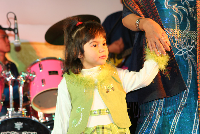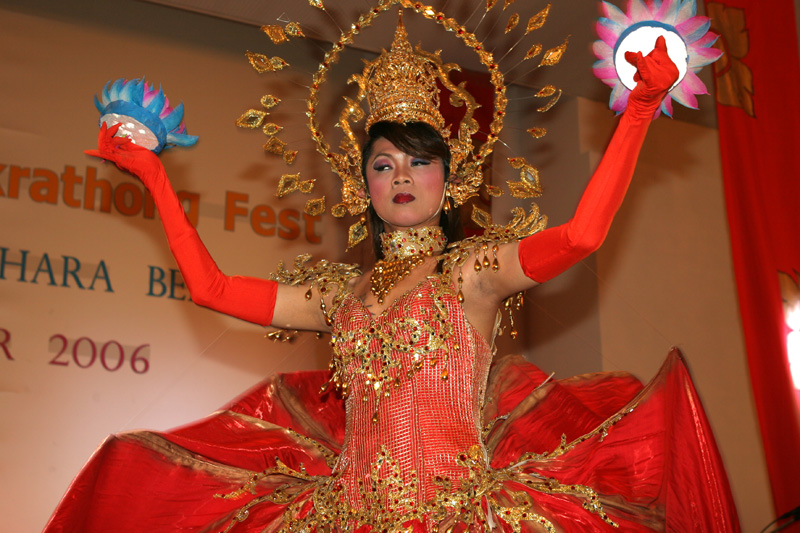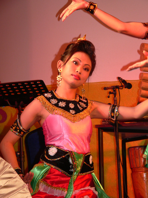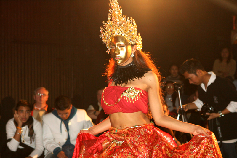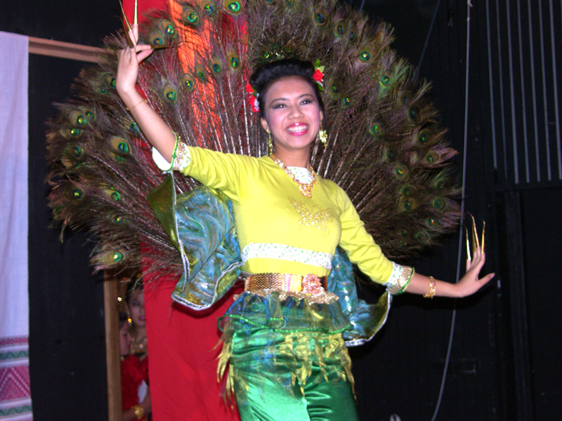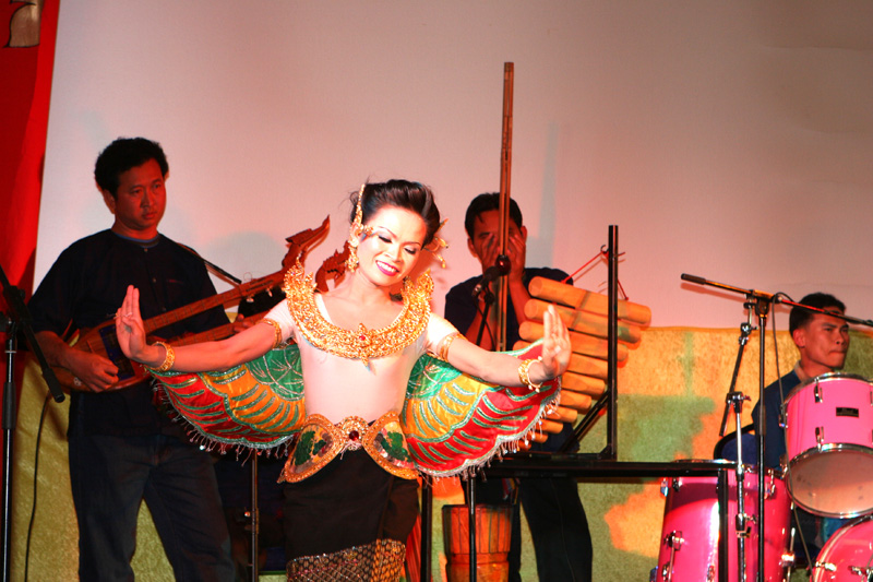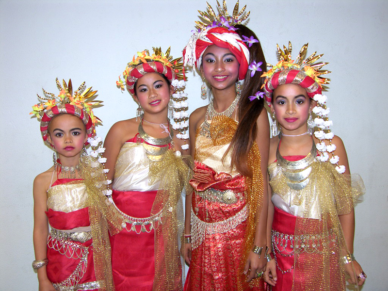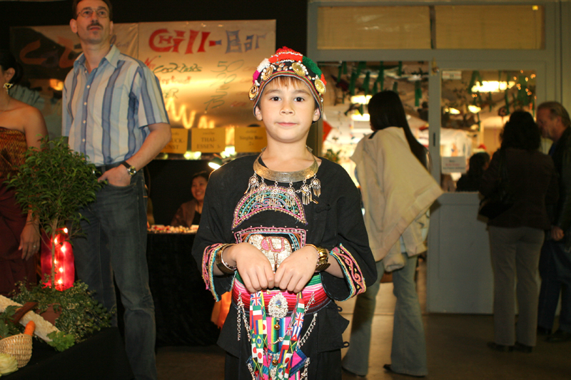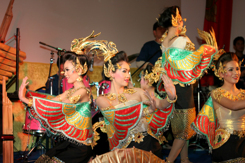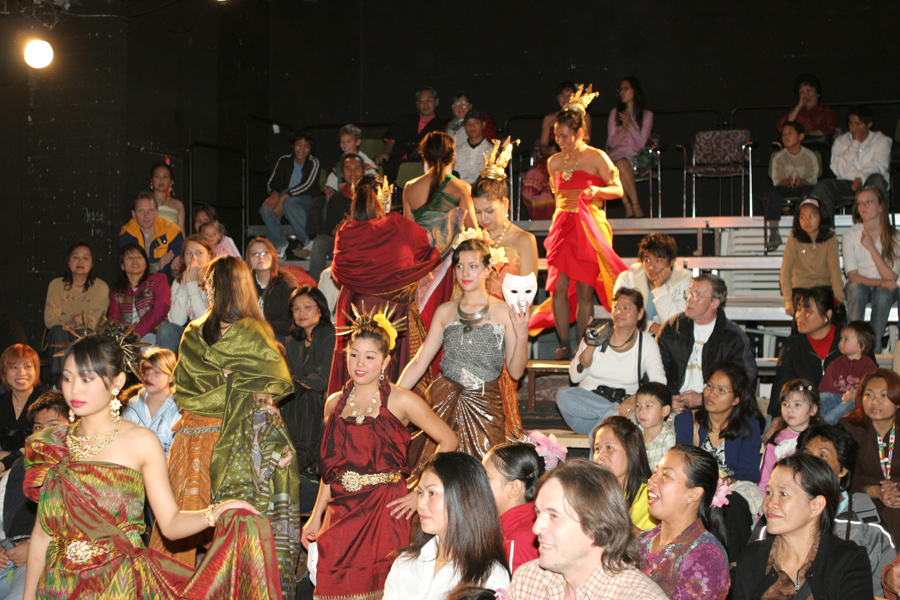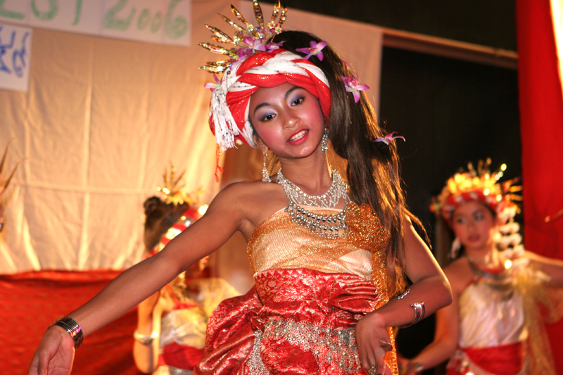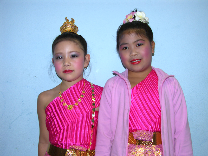 Nach dem Vortrag des Königsliedes (selbstverständlich standen alle auf) folgte die erste Darbietung: ein Tanz aus dem nördlichen Chiang Mai. Danach kamen die Jüngsten zum Zug. Darunter auch die dreijährige Lena, die schon mit dem Dress geboren zu sein scheint. Anschließend folgte ein aufgelockerter Tanz der Teens mit moderner Musik. Die anschließende Modenschau zeigte, dass man sich, oder besser, dass Frau sich mittels Bindetechnik hervorragend einkleiden kann, ohne den Schneider zu bemühen. Die dazu verwendeten Stoffe kommen hauptsächlich aus dem Isaan.