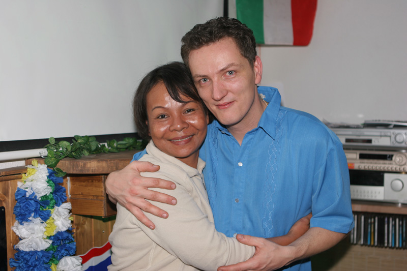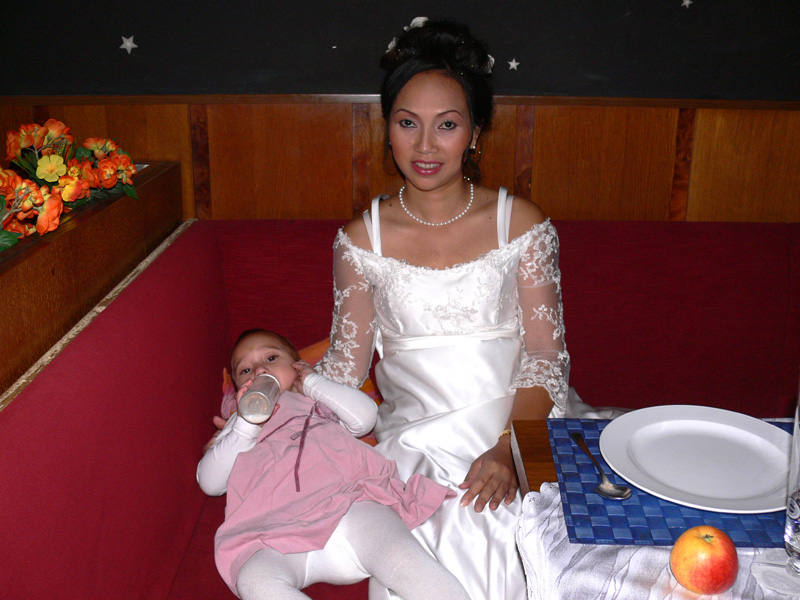 Beide hatten sich Anfang des Jahres 2004 im ehemaligen Mex Class Thai in der Lüderitzstraße kennen gelernt und leben schon zweieinhalb Jahren zusammen. Ihre gemeinsame Tochter Sara ist bereits 16 Monate alt. Zu der binationalen Familie gehört auch noch Peters 10-jähriger Sohn Jerry.