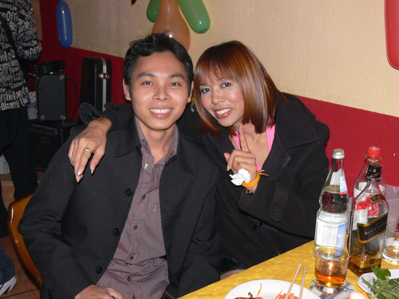 Geburtstage sind die kleinen Höhepunkte in der thai-deutschen Szene. Bieten sie doch die Gelegenheit, miteinander ausgiebig zu essen, zu sprechen und vor allem Spass zu haben. Am 15. November feierte Kek den ihren. Am großer Tisch im Berliner R.C.A. hatten viele Freunde Platz genommen und wurden köstlich bewirtet. Als da wären: Dia vom New Bangkok ulkte mit einer Perücke, Sawad war mächtig müde, Franco wie immer verliebt, Noi kam spät, Toi überraschte mit flottem T-Shirt. Ott sehr lustig, Pit kam mit ihrem Freund und sang, denn keine Thai-Party ohne die so geliebte Karaoke.
