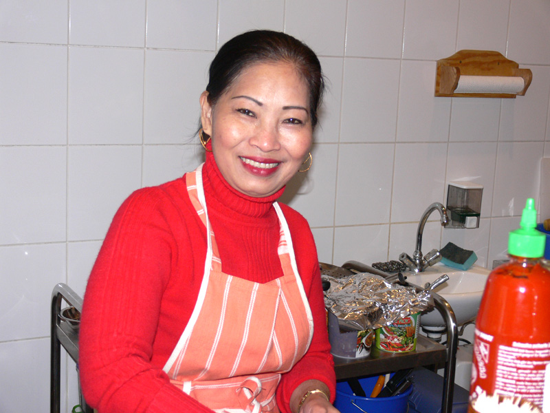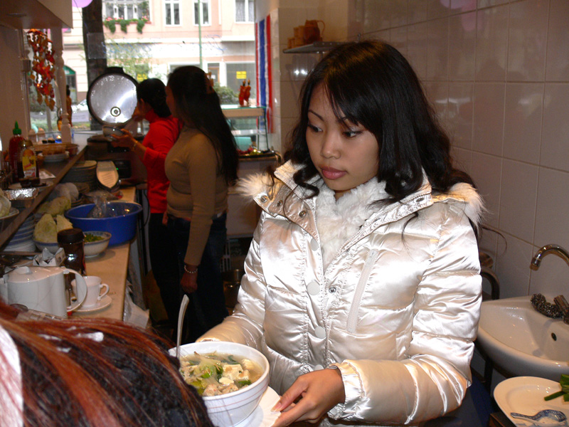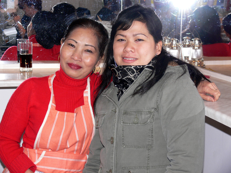 BERLIN: Auch in der kleinsten Thai-Küche kann es richtig gut schmecken. Dafür sorgt Köchin Nee, die wir schon vom Baan Thai her in guter Erinnerung haben. Mit Schwester Meau (beide Foto unten) nun der Neuanfang. Am 11. November weihte der Abt vom Wittenauer Wat den Mini-Thai-Imbiss in der Sonnenallee 134. Praktisch, nebenan das Bangkok Café. Chefin Dung Ding war auch da sowie die dritte Schwester Ning mit den Kids. Die Imbiss-Preise zumeist 5 und 6 Euro. Gungs mit 6,50 schon Maximum.