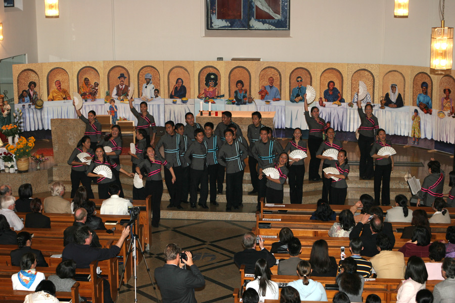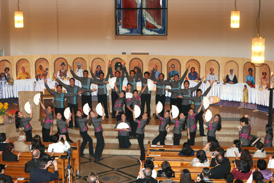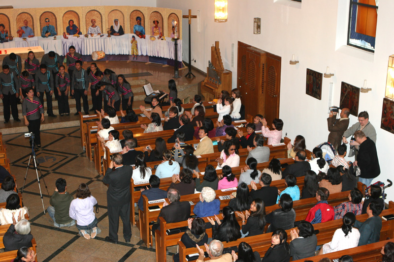 Es ist Sonntag in Berlin, der 8. Oktober, die Kirchenglocken läuten. Na ja, ein Kirchgänger bin ich nie gewesen, aber Pater Adonis, Leiter der philippinischen Heilig Geist Kirche hat zu einer besonderen Veranstaltung eingeladen. Durch journalistische Neugier angetrieben, verkleide ich mich mittels eines Anzuges und fahre in die Charlottenburger Bayernallee 28, dem Zentrum der ca. 600 Mitglieder umfassenden Berliner Gemeinde. Nach einem kurzen Info-Gespräch und Begrüßung einiger bekannter Filipinos ging es zum Hauptsaal der Kirche, in dem etwa 300 Personen Platz finden.