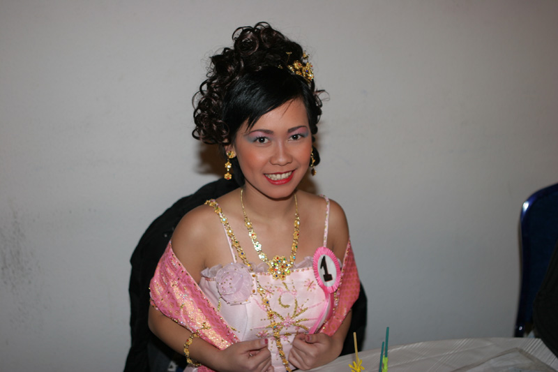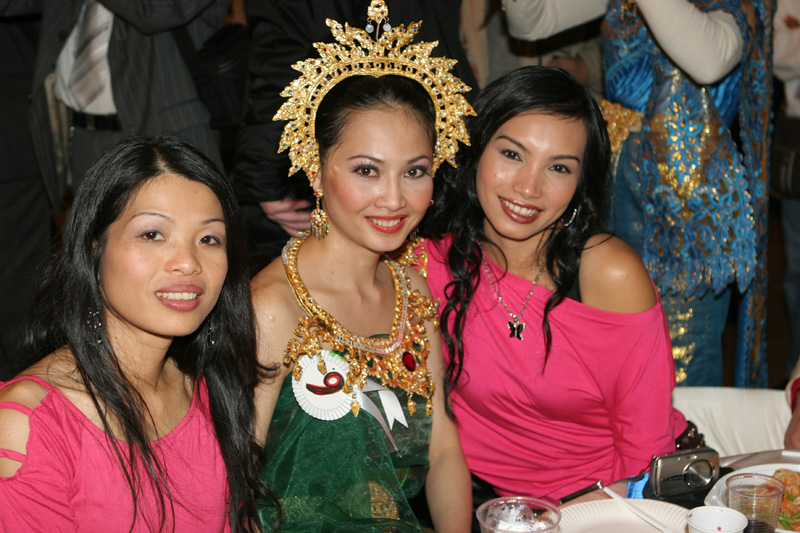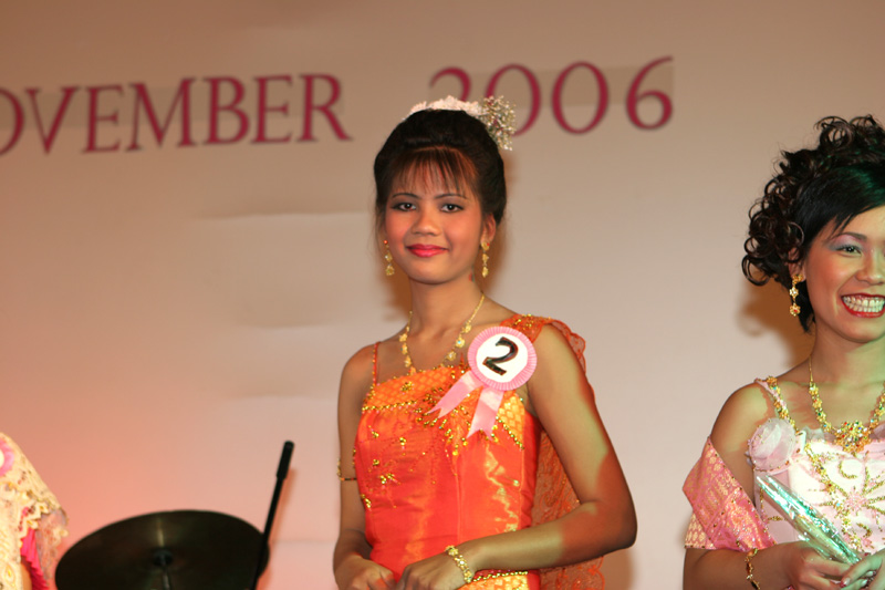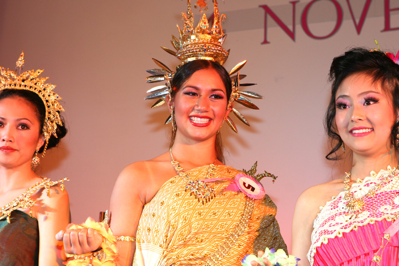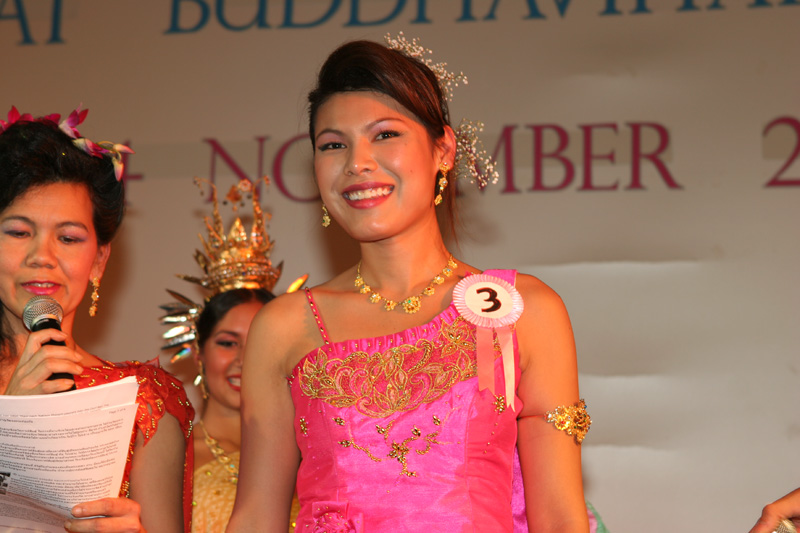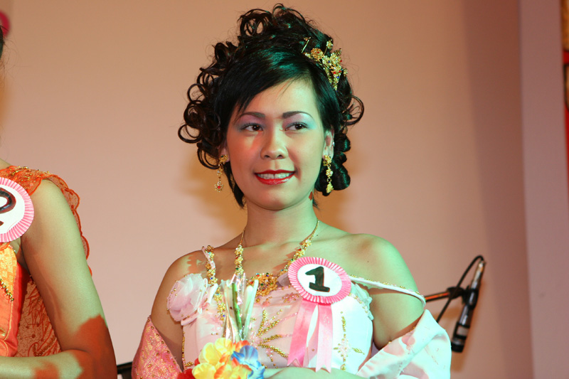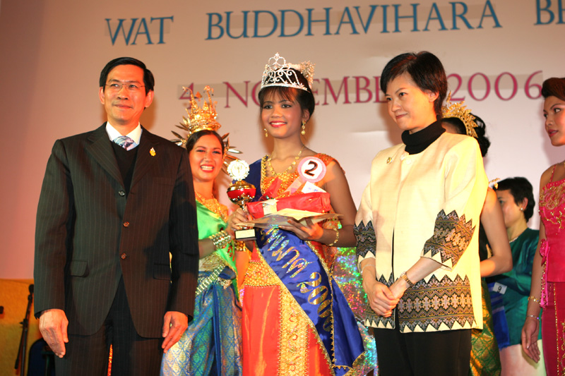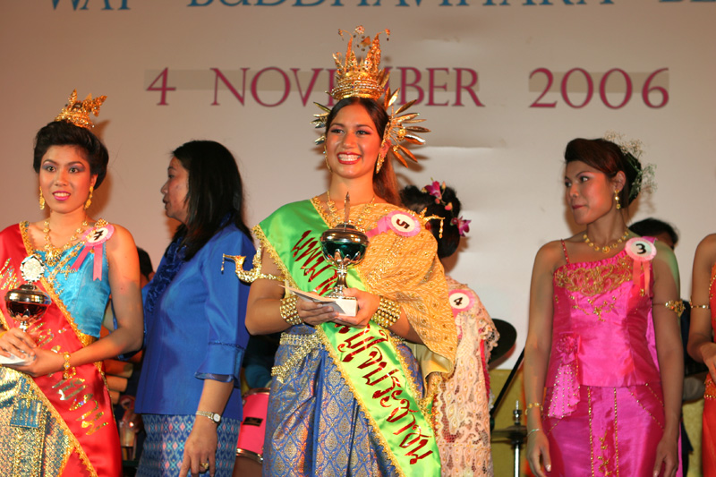 Der Höhepunkt des Abends war natürlich die Wahl der Miss Loy Krathong. Es wurde die vor drei Monaten aus Thailand gekommene Jutarat (Pai, Startnummer 2). Ein Wesen von traumhafter Schönheit, 17 Lenzen und mit ganz natürlichem Charme. Vom Zweiten Botschafter und dessen Gatting empfing die Gekrönte die Präsente und die Glückwünsche. Pawina (Nr. 3) kam ins Finale, gewann aber eine Vorrunde.