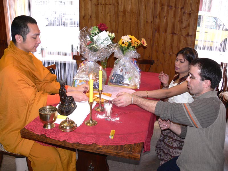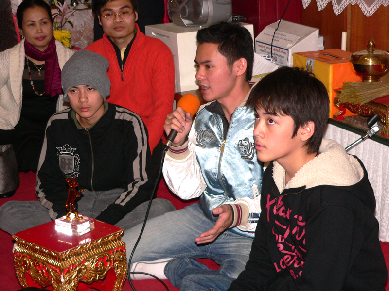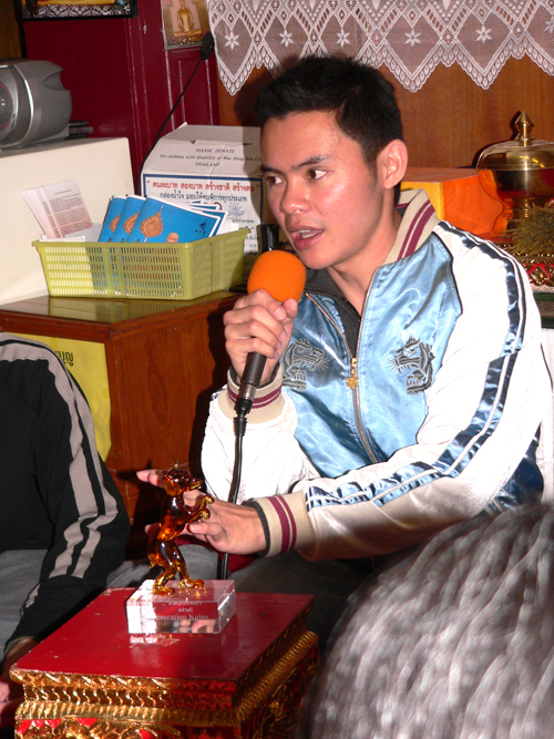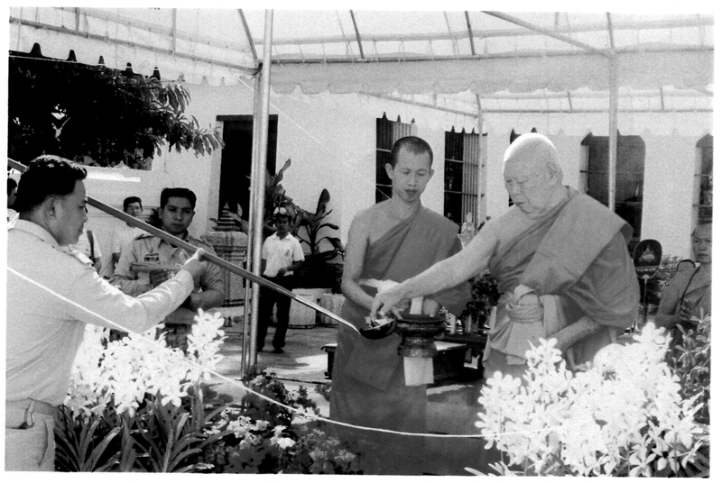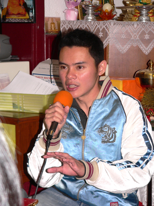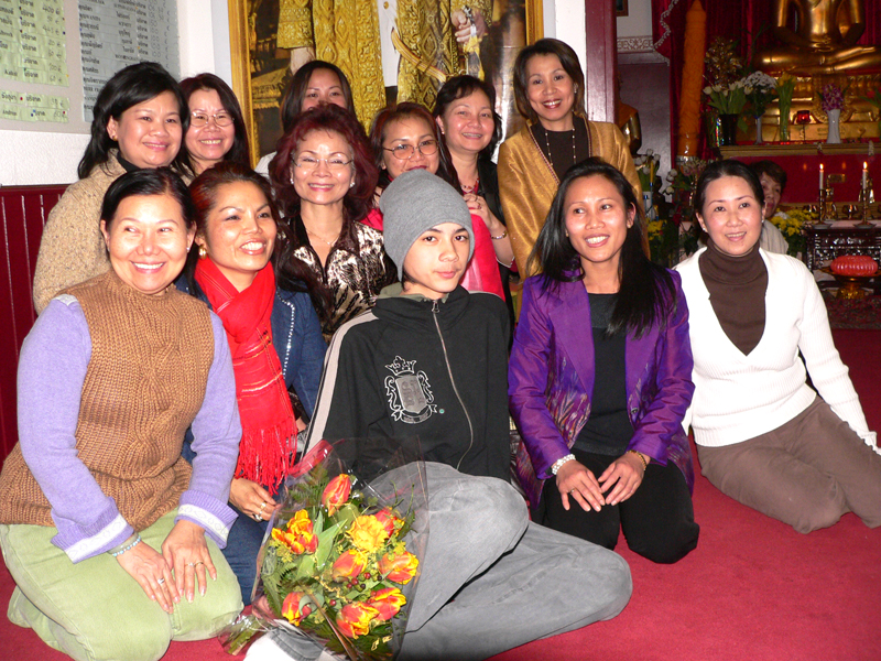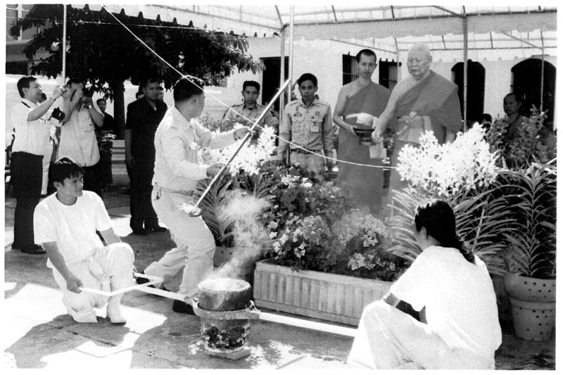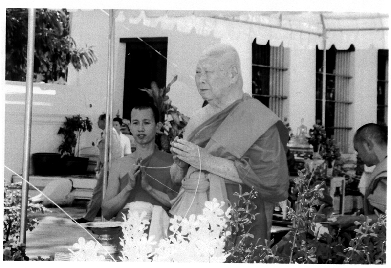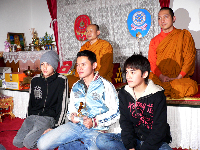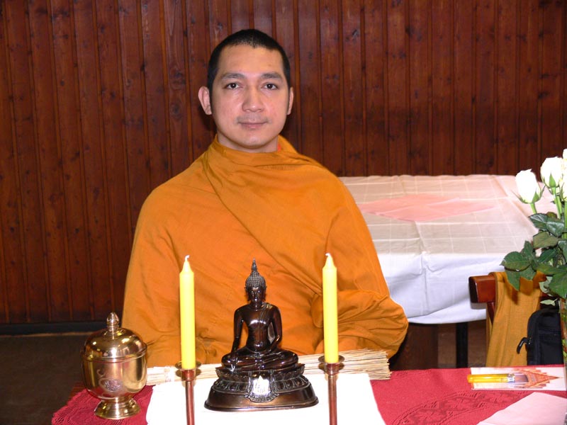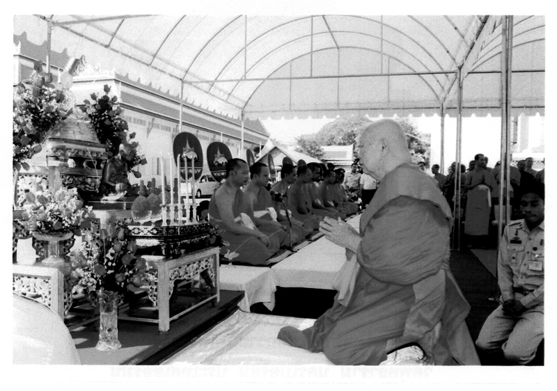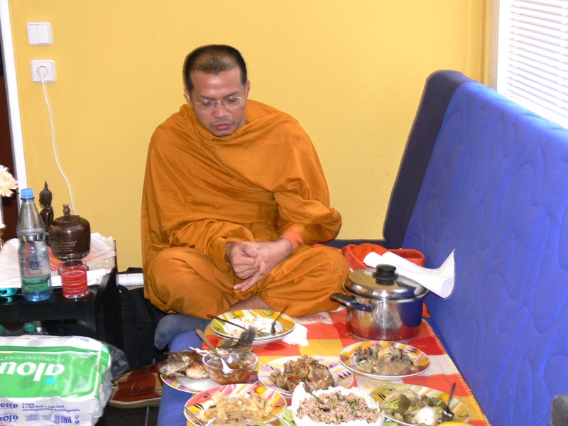 Die weiteren Fotos auf dieser Seite zeigen den Abt bei seinem Besuch eines sehr hohen Mönches in Thailand. Am 15. Januar 2007 haben beide Mönche in Bangkok im Wat Sraket diese Buddhastatue aus Metall gegossen. Auch sehen Sie eine Abbildung der Goldplättchen.