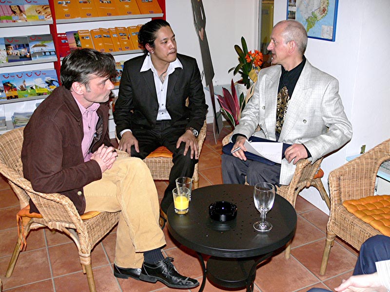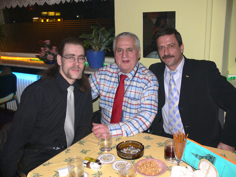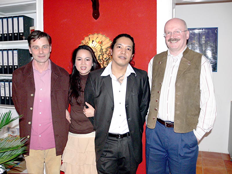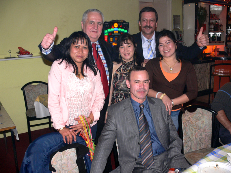 Diese zünftige Herrenrunde stand im Zeichen der Beförderung meines Freundes und Geschäftspartners Christian Kube. Anwesend waren Mitarbeiter der HMI Organisation und Bekannte aus der Thaiger Bar sowie zukünftige Mitarbeiter. Warum wir gerade das Bangkok Café gewählt haben? Das hat seine besondere Bewandtnis: Im letzten Jahr sind einige Führungskräfte der HMI nach Thailand geflogen und dort vom sogenannten Thaivirus infiziert worden. Deshalb sollte diese Feier in thailändischer Atmosphäre stattfinden. Ursprünglich hatten wir ja die Thaiger Bar in Schöneberg im Auge, doch wegen einiger Probleme ging das leider nicht mehr. Wir, das sind Herr Harald Hennig, Herr Hasan Bayram, Herr Christian Kube und meine Wenigkeit, Ronald Neumann.