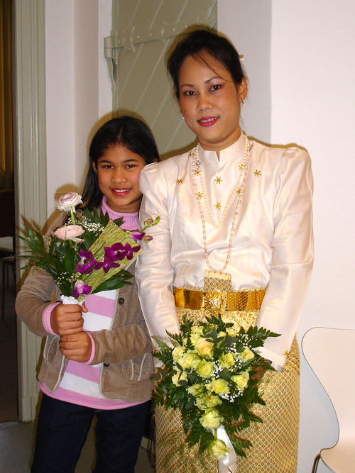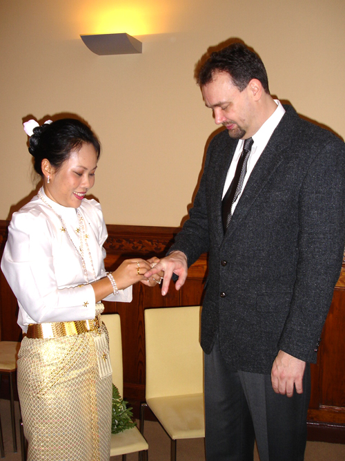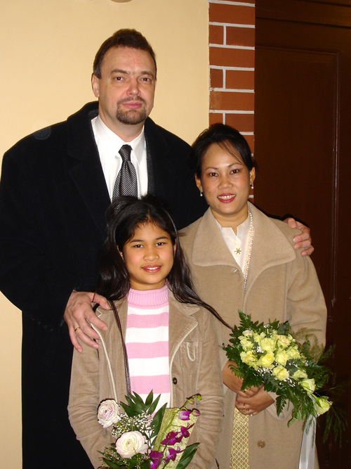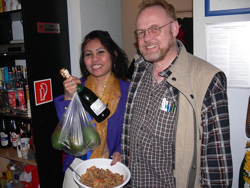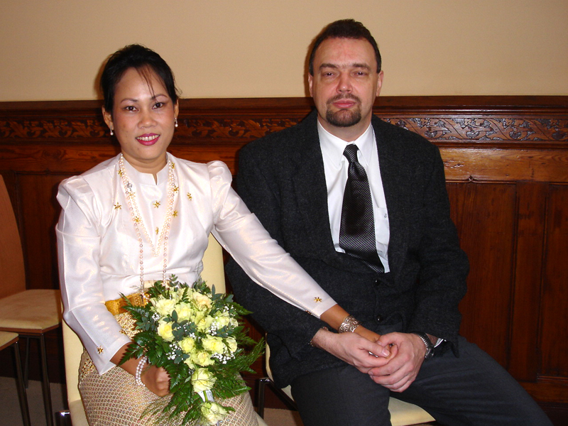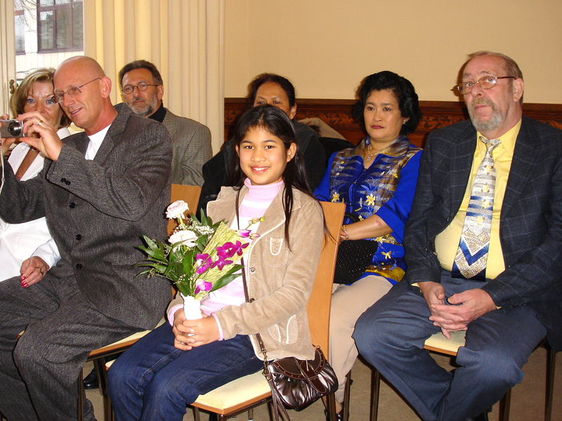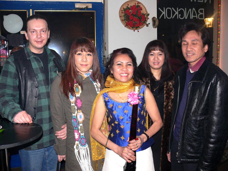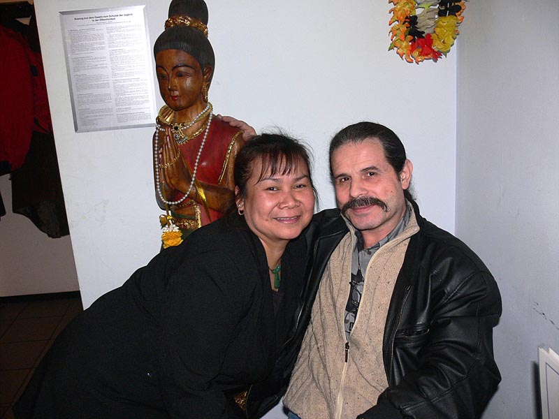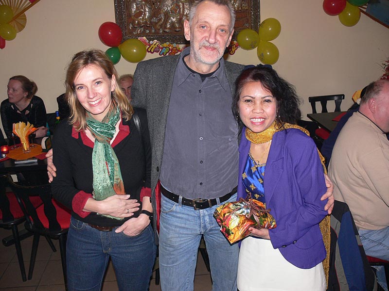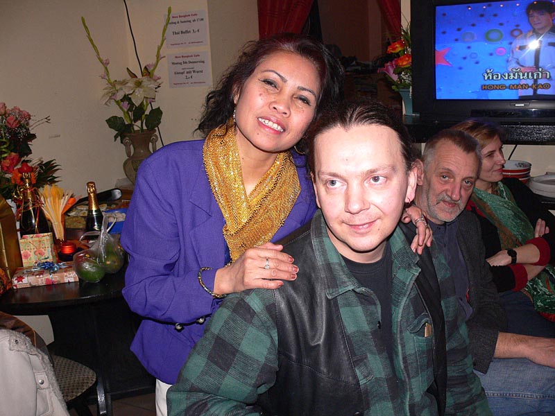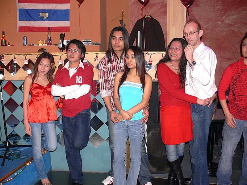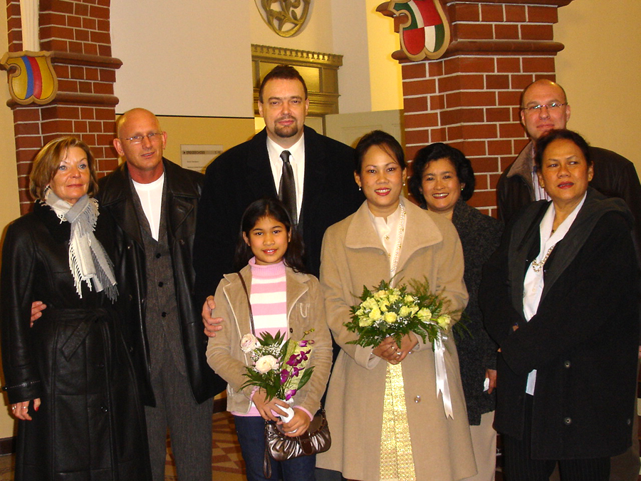 Da Aor allerdings nur für drei Monate auf Besuch hier war, rückte der Abschied schnell näher, was zur Folge hatte, dass Andreas 2006 drei Mal nach Thailand reiste, um seine geliebte Aor wiederzusehen. Dies war natürlich kein Zustand auf Dauer, und da man füreinander bestimmt war, sich liebte und zusammenleben wollte, reifte schnell der Entschluss in Deutschland zu heiraten. Es wurden Nägel mit Köpfen gemacht, und so kam Aor Ende Dezember 2006 mit ihrer Tochter Cake (10) zum Heiraten nach Berlin. Jetzt ging es recht schnell, und als das O.K. vom Standesamt Lichtenberg kam wurde am Freitag, den 16. Februar 2007, etwa 11.00 Uhr, im Kreis der Familie und engster Freunden geheiratet. Unter den Gästen waren Aors Mutter Mee mit ihrem Mann Manfred, Aors Tante Wanee und deren Mann Peter, Aors Tochter Cake, Andreas bester Schulfreund Ulf, die Trauzeugen Elke & André und ich, der einmal mehr als Dolmetscher fungierte. Nach den üblichen Formalitäten im Standesamt ging es dann schnurstracks zur Verköstigung der Hochzeitsgesellschaft über. Diese erfolgte im kleinen, sehr gemütlichen Restaurant Thai Food in der Kantstraße 134, in Berlin-Wilmersdorf. Es wurde ein sehr schmackhaftes, aus mehreren Gängen bestehendes Thai-Menü aufgetafelt. Und am Ende waren auch die Leute mit dem größten Hunger pappsatt, meine Wenigkeit eingeschlossen. Diesen perfekten Hochzeits-Tag rundete abends ein Besuch der STARS Disco ab, wo man noch lange bei Hochprozentigem zusammen saß und die Stimmbänder für die nun folgenden Gesangseinlagen ölte.