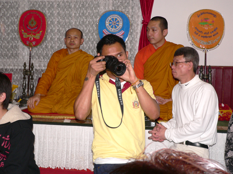 Der Abt des Tempels in Berlin-Marzahn hat uns dieses Material zur Verfügung gestellt. Wir unterstützen hiermit die Aktion der Berliner Buddhisten, die nebenstehende Buddhafigur mit vielen Gold-Plättchen zu bedecken. Diese Zeremonie findet in dem Zeitraum vom 13. bis 15. Juli 2007 im Wat Buddharama statt. Der Anlass ist der 80. Geburtstag des Königs am 5. Dezember 2007.