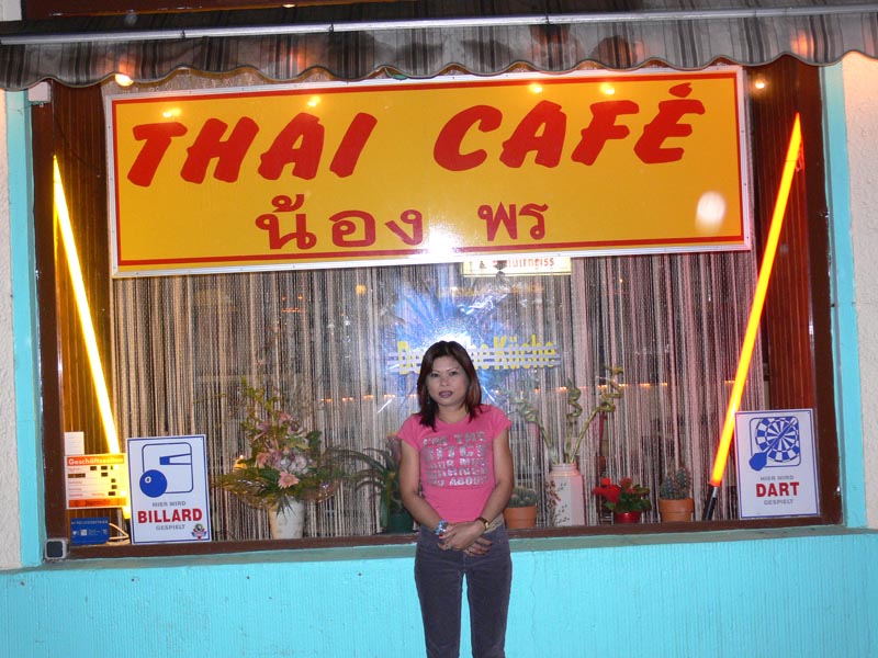 New Bangkok Café bei Dia: Wegen des Hotels nebenan sehr guter Besuch, aber leider nur wenige Thaifrauen. Das Buffet jetzt für Euro 3,00.