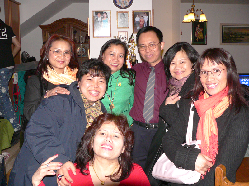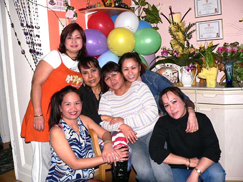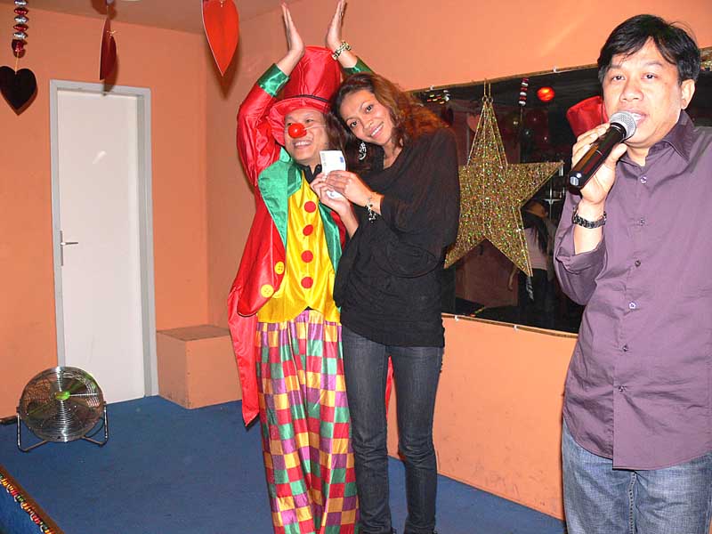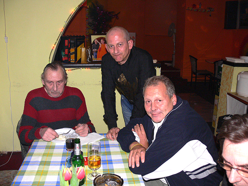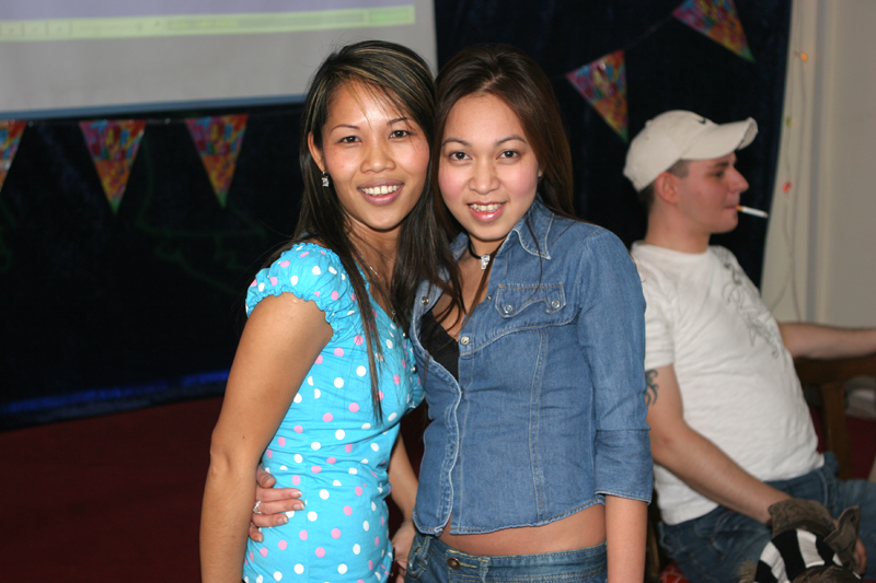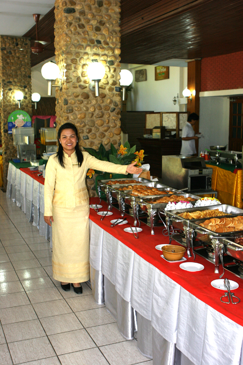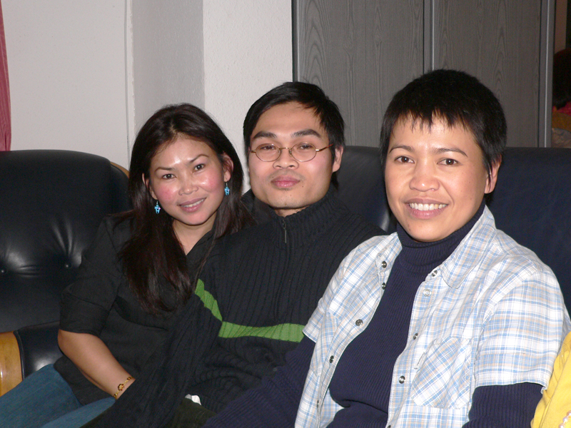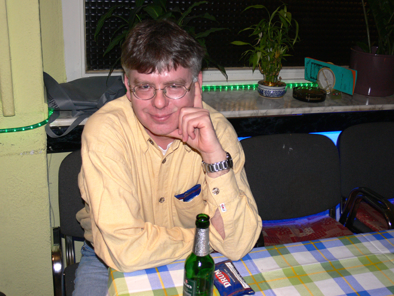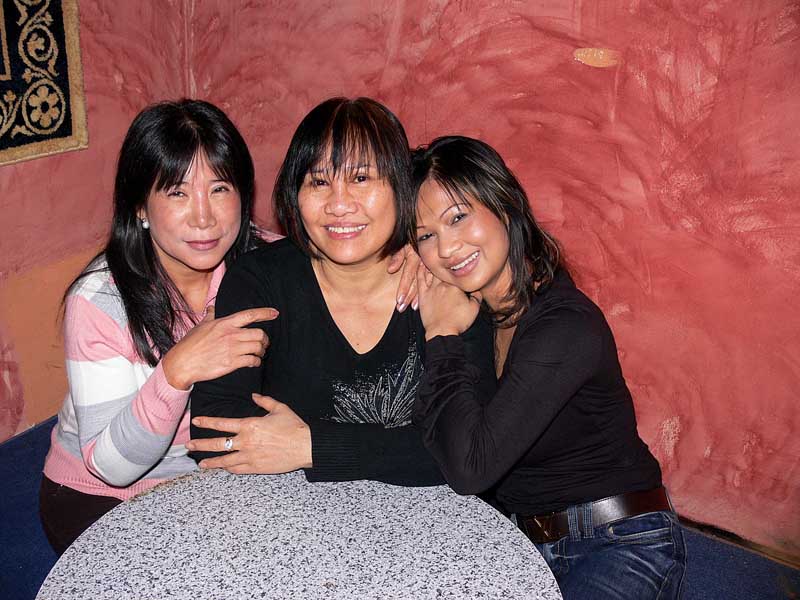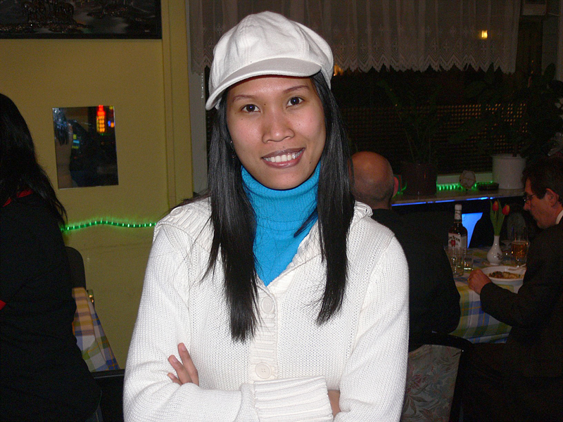 Der Herr in der Badehose, der sich kurz mit den Damen unterhält, ist also kein Essenteilnehmer. Ich kenne ihn seit 1995. Er lebt in Pattaya und gehört in diesem Hotel schon fast zum Inventar. Er holt immer nach dem Frühstück die Wurst ab, die die Farangs zurückgehen lassen, und füttert damit die Katzen. Er wird wohl auch den Personaleingang benutzt haben. Aber Ihr konntet auf dem Foto ja sehen, dass die Damen normal gekleidet waren für ein Frühstück bei 40 Grad Celsius im Winter.
