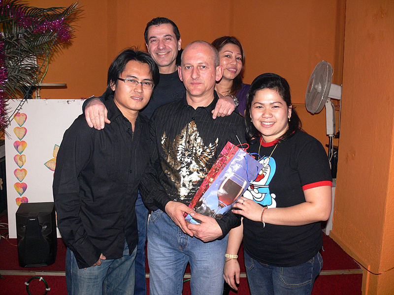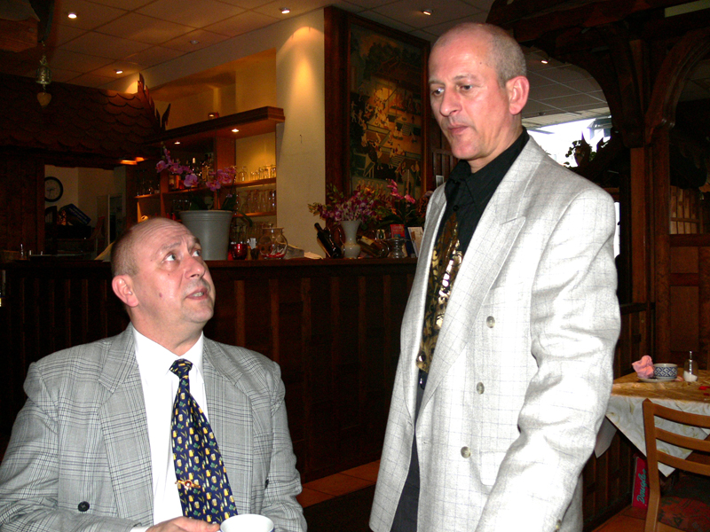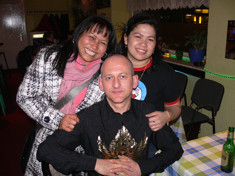 JoJo - das ist Dr. Jürgen Schulze aus Köln. Kein Unbekannter in Thai-Kreisen. Seine Thaimassage mit dem Namen Thai Kultur in Ruppichteroth ist ja schon legendär zu nennen, sei es von der Größe, von den kleinen Preisen und von dem besonderen Interieur. Nun war JoJo in Berlin unterwegs und hat sich mit Thai Gastro Reporter Klaus Müller alias Santa Claus getroffen, auch mit Helmut big und mit vielen anderen. Das alles schien dem wackeren Riesen so gefallen zu haben, dass er beschlossen hat, in Berlin einen riesigen Thai-Massage-Tempel aufzutun. Soweit, so gut. Wenn es Wirklichkeit wird, dann können sich aber viele in Berlin warm anziehen: Eine Stunde zu 30 Euro. Das wird Wellen schlagen. Na ja, vielleicht wird es ja doch nichts. Abwarten und Tee trinken.