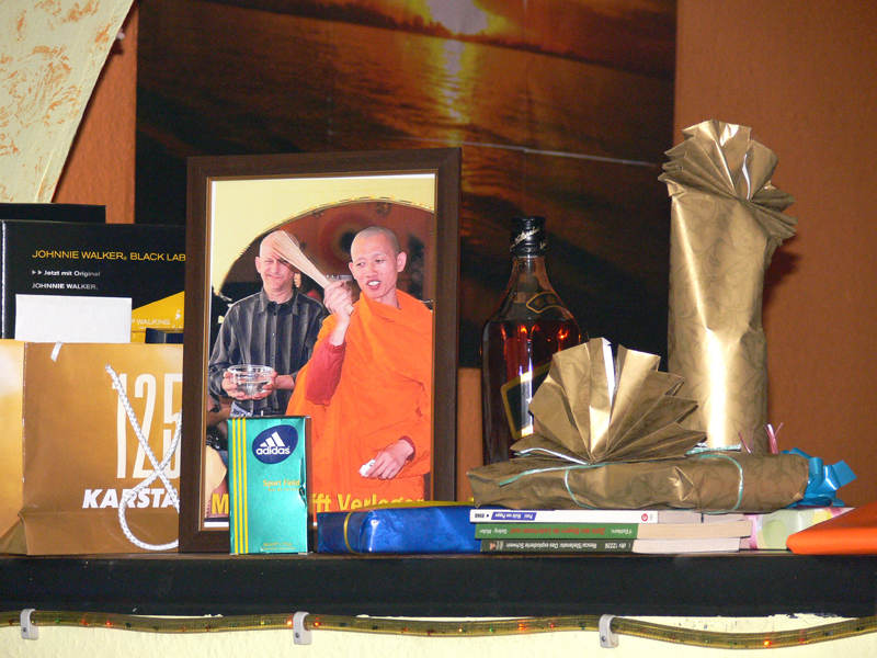 Beim Niederknien vor Mönchen oder vor Buddhastatuen: immer die Fußsohlen nach hinten! Einem Mönch darf man die Füße nie zeigen. Beim Tempelbesuch bitte die Spende nicht vergessen, danach erst kniet Ihr vor dem Mönch nieder.