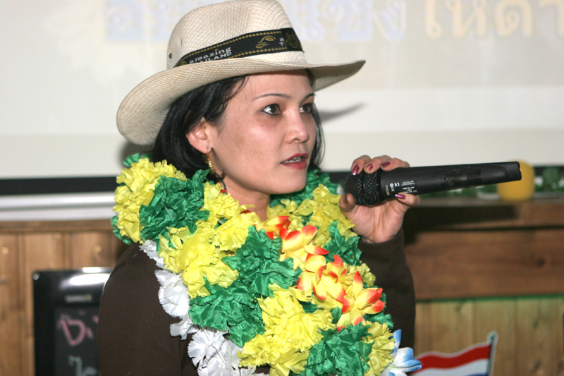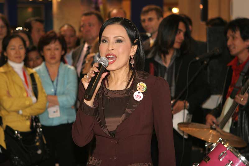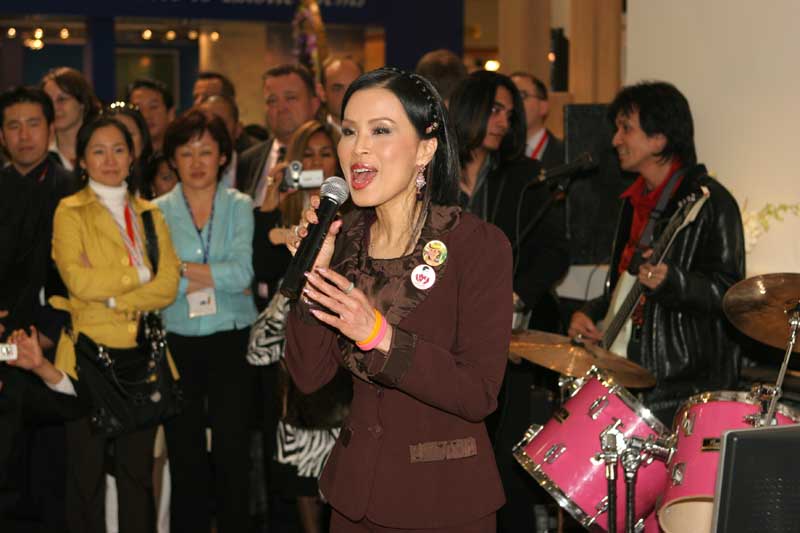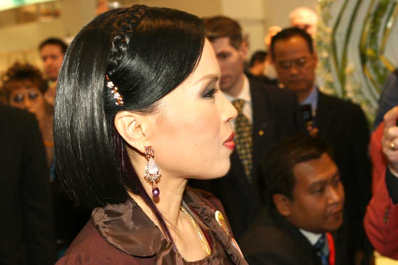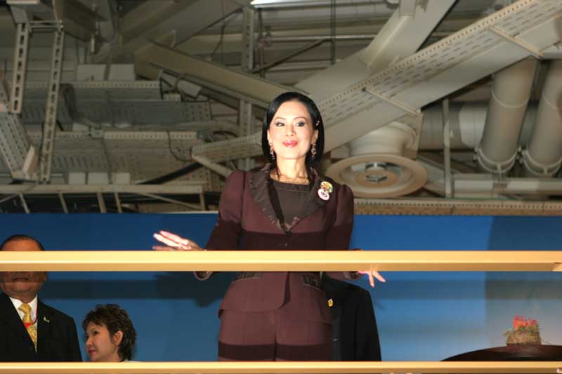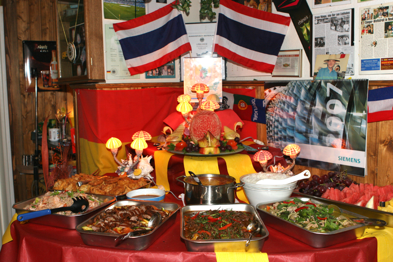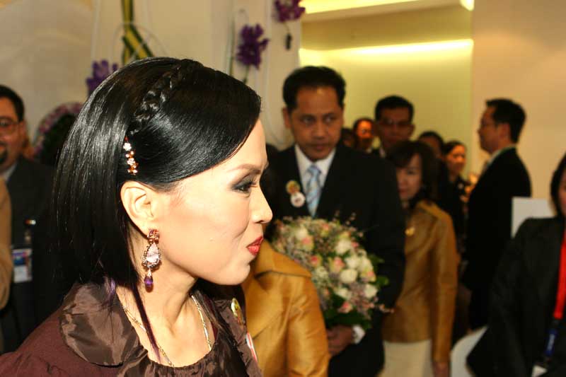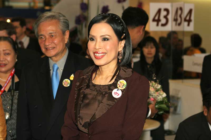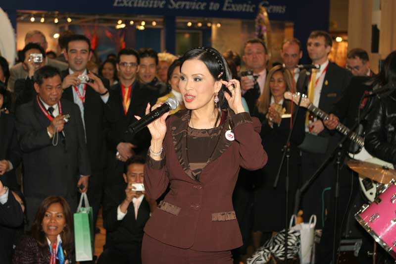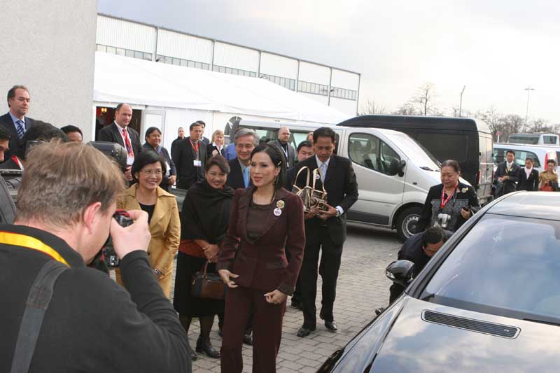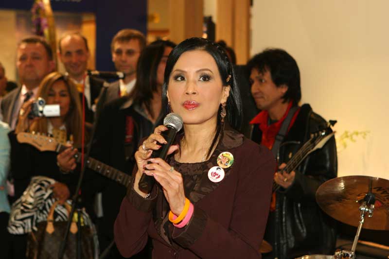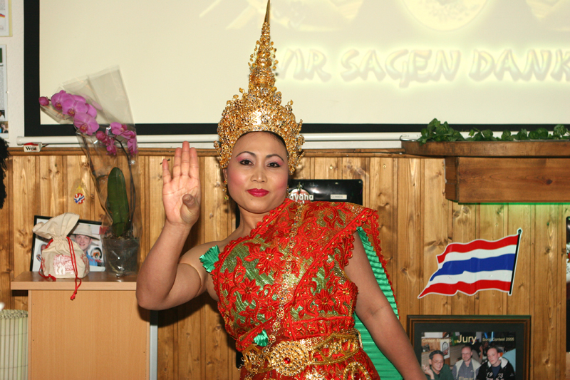 Die Hallen 26 A und 26 B beherbergten wie im letzten Jahr die Länder Asiens. Bunte farbenträchtige Stände, angereichert mit kleinen Vorführungen in landestypischer Kleidung, lockten die Besucher an. Der große Thailandstand wählte dieses Jahr ein nüchternes Weiß als Grundfarbe. 106 Hotels und 17 Agenturen bewarben die Besucher mit informativen Gesprächen. Wer zwischendurch den Hunger stillen wollte konnte die leckeren Gerichte vom Berliner Thai-Thai Imbiss probieren. Die Mädels sind dieses Jahr aus Platzgründen aus der Halle verband worden und befanden sich in einem Zelt auf dem Hof. Egal, das Essen war wie immer Spitze. Angeführt vom thailändischen Minister für Verkehr und Sport, Dr. Suvit Yodmanee, gefolgt von den Angehörigen der hiesigen Botschaft auf der einen Seite, den Fotografen und Besuchern auf der anderen Seite, erwarteten alle Ihre Hoheit, Prinzessin Ubol Ratana. Kurz nach 16 Uhr fuhr der schwarze Mercedes direkt vor die Halleneingangstür. Bei dem folgendem Rundgang durch die Thailandstände hatten die Thais schon ganz schön Mühe, einen kleinen Freiraum um die Prinzessin zu schaffen. Klar, jeder wollte seine Kamera in die richtige Position bringen. Nach einer Pause, die ohne Fotoshooting im oberen Bereich stattfand, sang Ihre Hoheit englische und thailändische Lieder. Die Life Musik lieferten John am Keyboard, Ott am Bass, Maek und Noi an der Gitarre und Thong am Schlagzeug. Gegen 20 Uhr verabschiedeten die begeisterten Zuhörer unter viel Beifall Ihre Hoheit, die sich ins Mao Thai (Meierottostraße) zurückzog. Man muss schon sagen: Ein wirklich großer Auftritt. Helmut Kremser