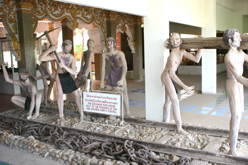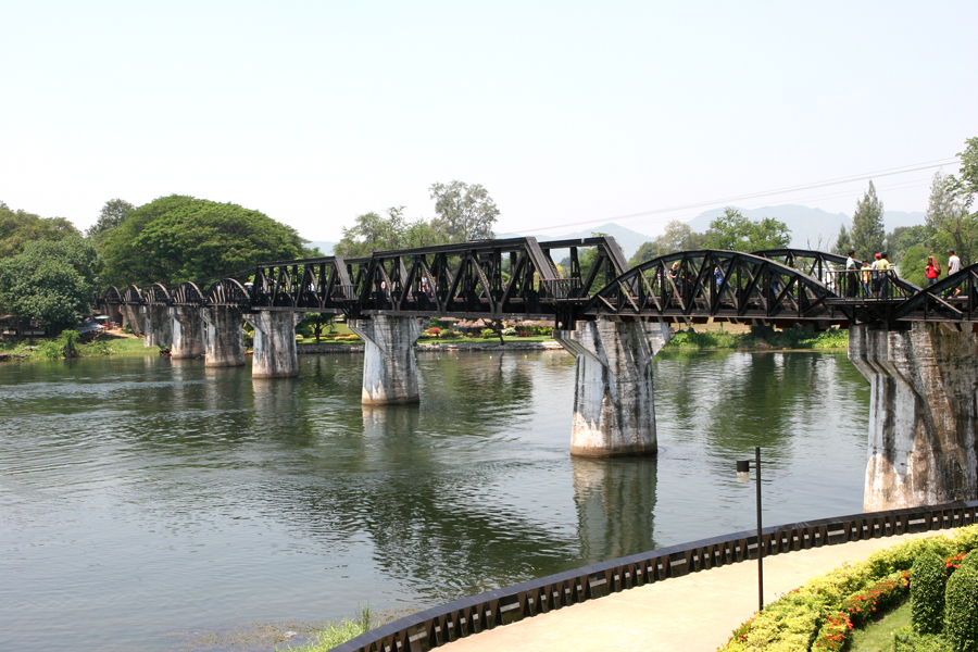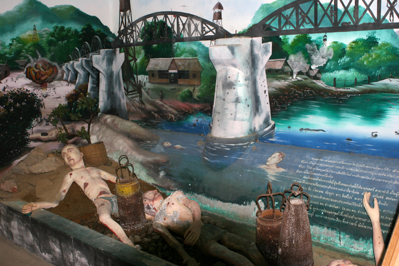 In Wirklichkeit wurde etwa sechs Monate nach deren Fertigstellung eine zweite Brücke aus Stahl errichtet. Beide wurden 1945 von den Flugzeugen der Alliierten zerbombt. Die Stahlbrücke hat eine japanische Firma 1946 wieder aufgebaut. Die Instandsetzung erfolgte 1971. Während der größte Teil der Schienen von den Engländern demontiert wurde, sind ein paar Meter der Schiene der Holzbrücke im Kriegsmuseum in Kanchanaburi zu sehen. Weiter beherbergt es eine umfangreiche Waffensammlung aus damaliger Zeit, Wandmalereien, Fahrzeuge der Japaner sowie Transportwagen für die Schienen und die dazugehörige Lok. Alles im Original!