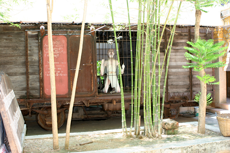Unweit vom Museum liegt der Soldatenfriedhof. In der gepflegten umfriedeten Anlage fanden 6.982 Gefangene ihre letzte Ruhe. Laut Museum starben 15.000 Kriegsgefangene beim Bau der Eisenbahn. Die Zahl der gestorbenen Asiaten wird mit 100.000 angegeben. Andere Qellen sprechen jedoch von einer mehr als doppelten Anzahl. Noch heute gedenken Angehörige der Verstorbenen. Besonders ein paar ältere Menschen, die selbst am Ort des Verderbens waren und die mörderische Tortour miterlebten wischen sich die Tränen mit weißen Tüchern von den Augen. Sie sind nicht zum ersten Mal hier (das Durchschnittsalter der Gefangenen war 20).
