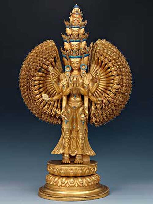 Ein Glanzpunkt der Ausstellung ist mit Sicherheit die große Skulptur des tausendarmigen Bodhisattva Avalokiteshvara, der Gottheit des unermesslichen Mitgefühls, welche den Besucher bereits am Eingang mit Milde begrüßt. Ein Bodhisattva ist ein Mensch, der schon erleuchtet wurde, sich jedoch freiwillig entscheidet in den Kreislauf des Lebens und Leidens zurückzukehren, um anderen Wesen zur Erleuchtung zu verhelfen. Der lebende Dalai Lama, der in Tibet gottgleich verehrt wird, gilt als die 14. Inkarnation dieses Bodhisattvas. Dagegen erscheint die älteste Buddha-Skulptur der Ausstellung aus dem Jahr 473 nach Christus unscheinbar, ist für ihr Alter unglaublich gut erhalten.