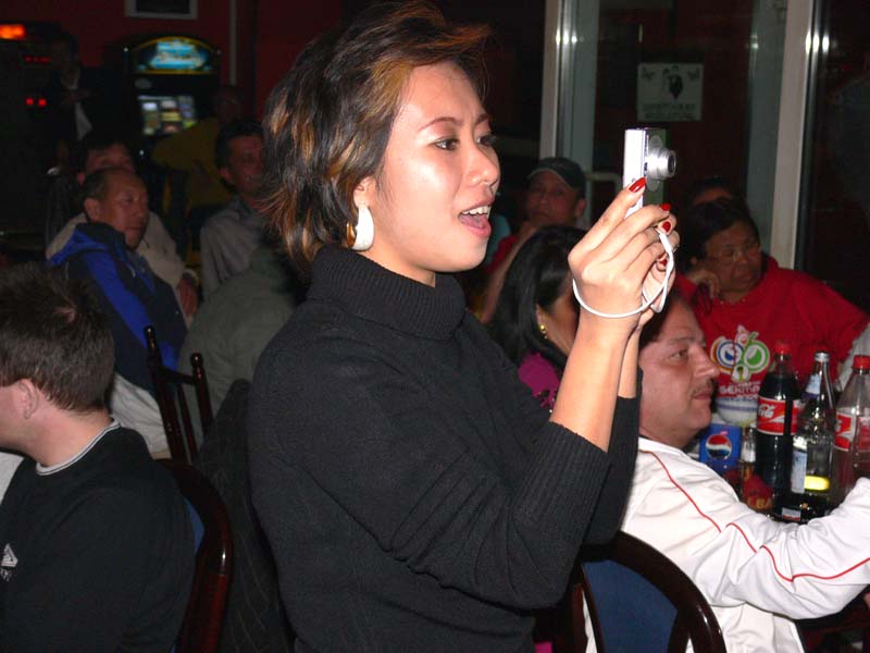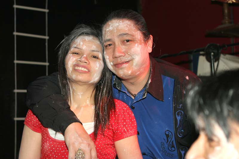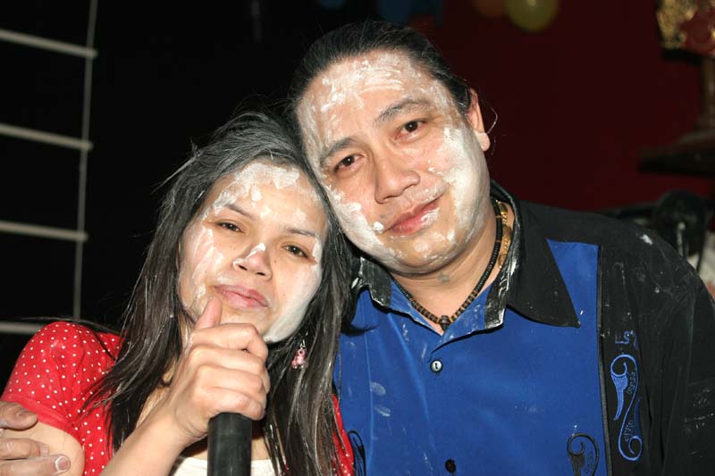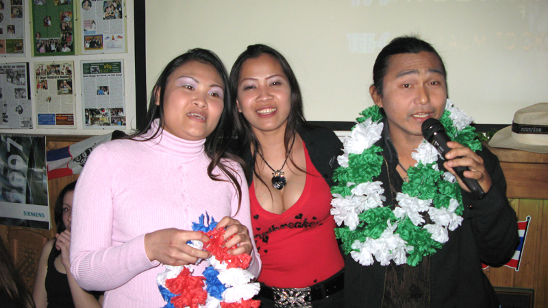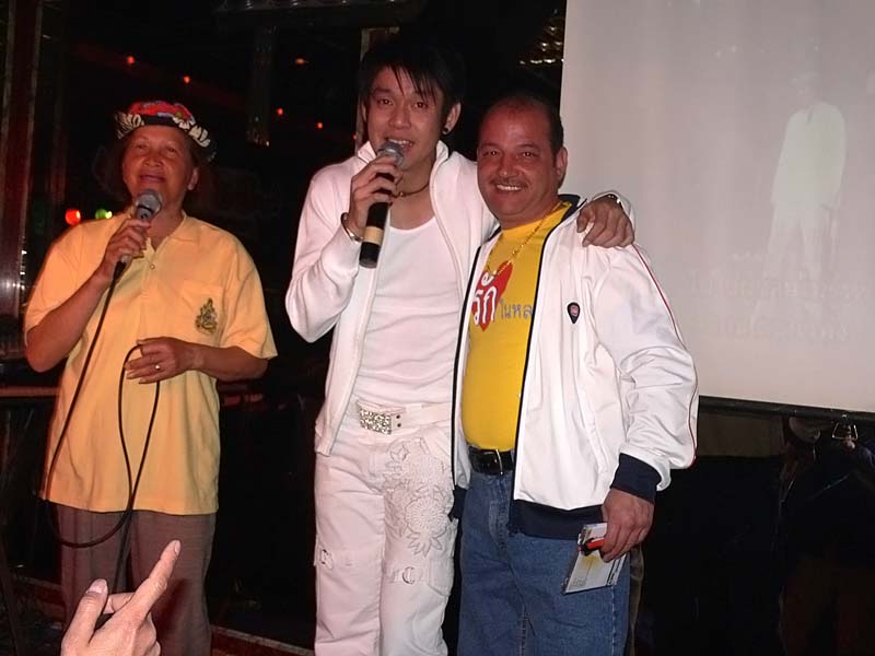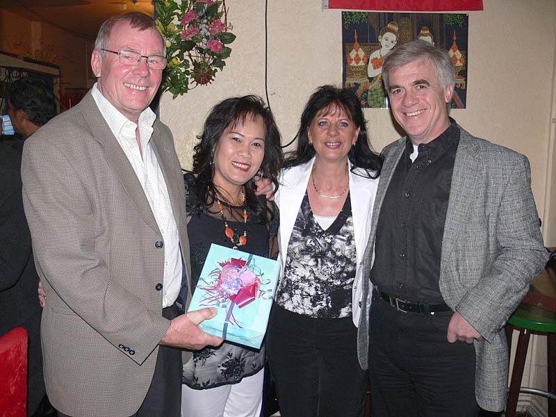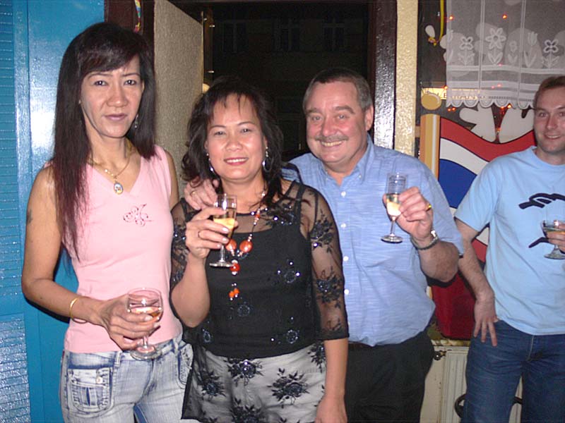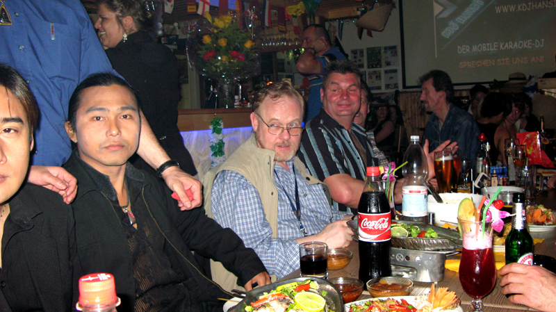 Helmut, unser bekannter Fotograf aus Steglitz, hatte zur VIP-Party eingeladen (so nannte er sie). Die Karaoke-Bar im Koh Samui Stil war rappelvoll, und jeder Gast wurde persönlich begrüßt. Am Eingang gab es gleich ein Gläschen Sekt. Es wurde ein großzügiges Büfett geboten, und dieses war so schmackhaft, dass sich ein Gast am Nebentisch innerhalb einer Stunde gleich vier Mal bediente. Schade nur, dass man nicht so viel essen kann. Nach dem Speisen wurde fröhliche Karaoke geboten.