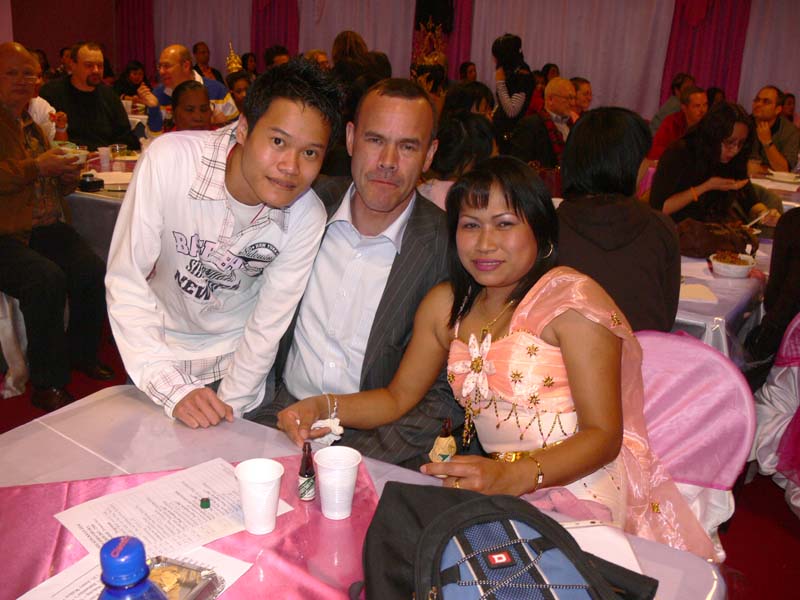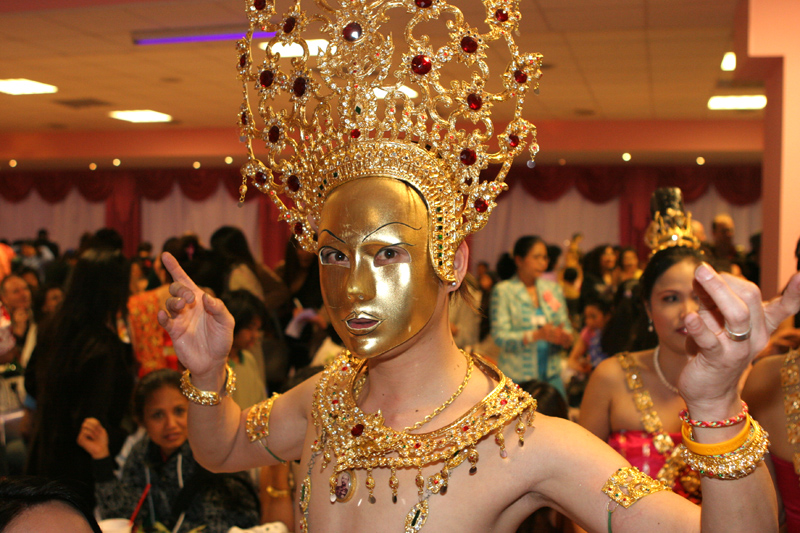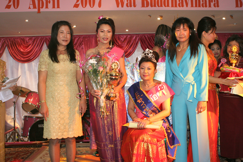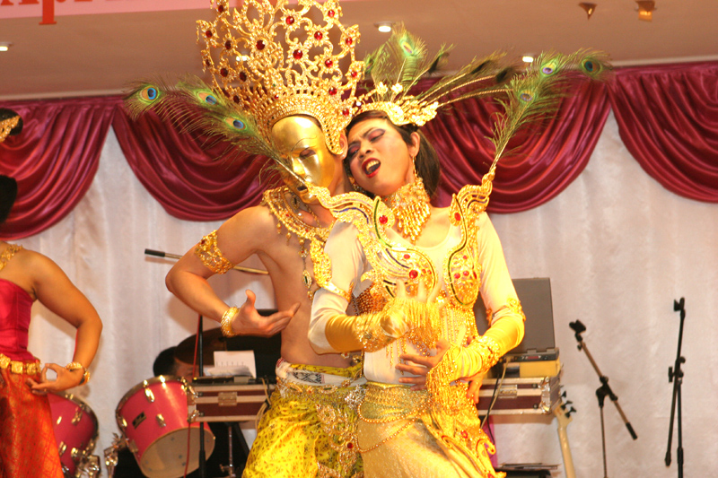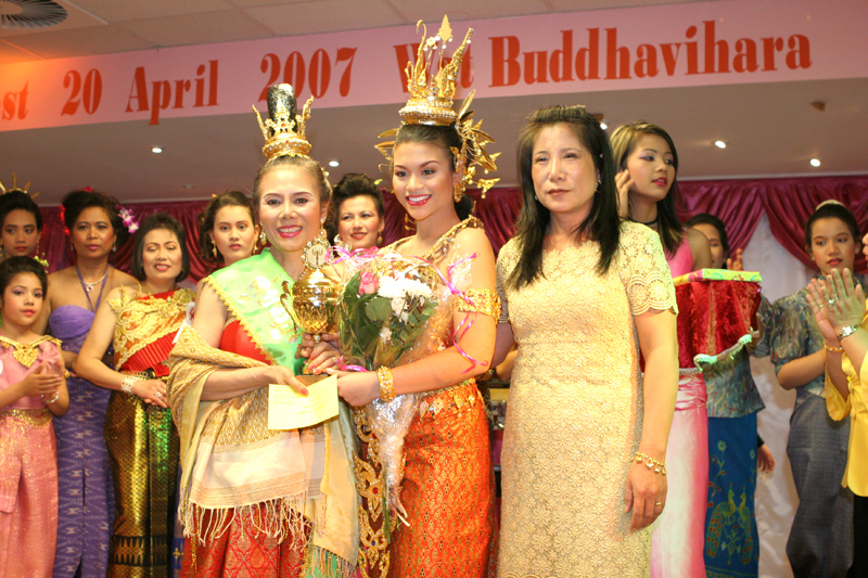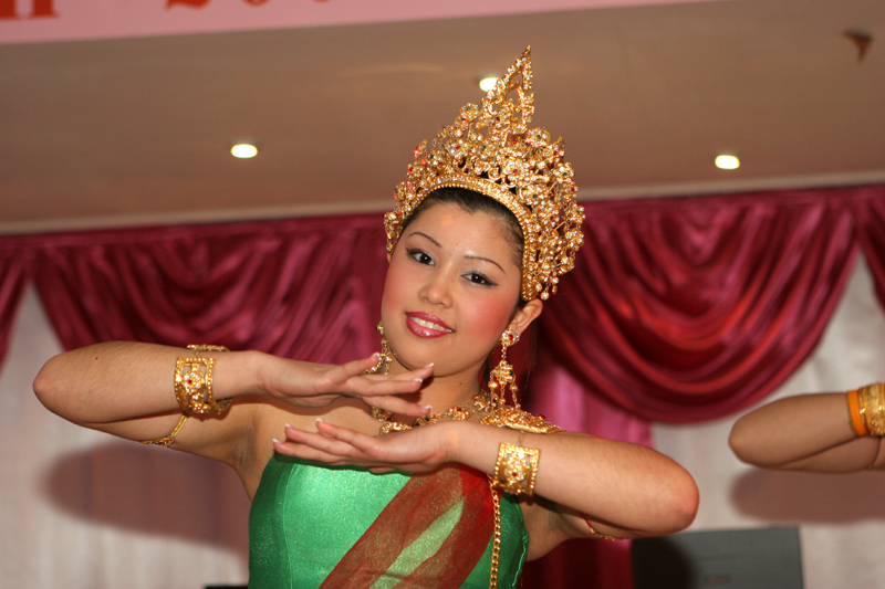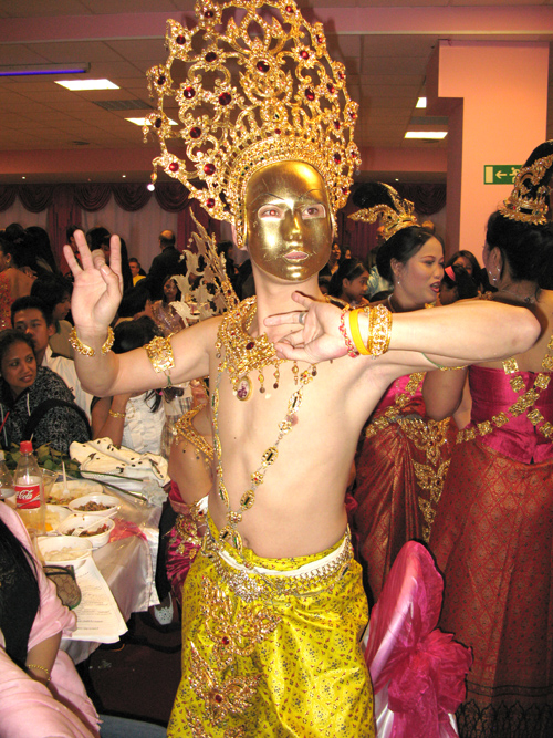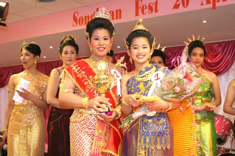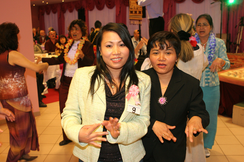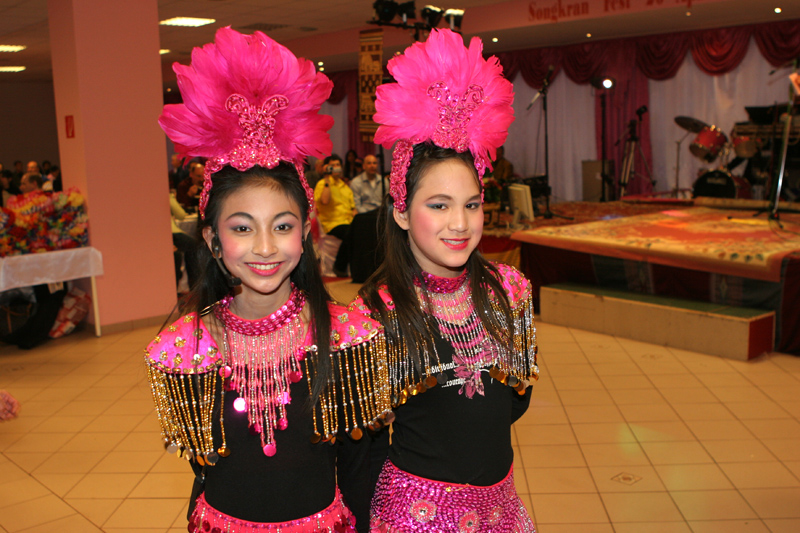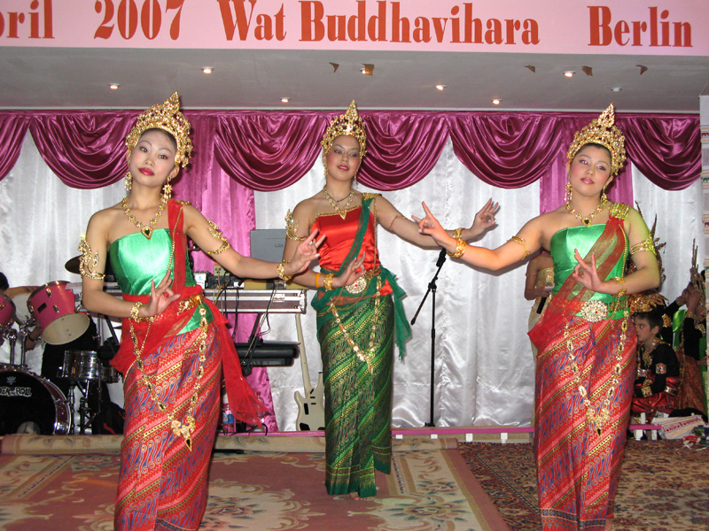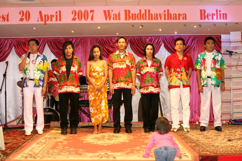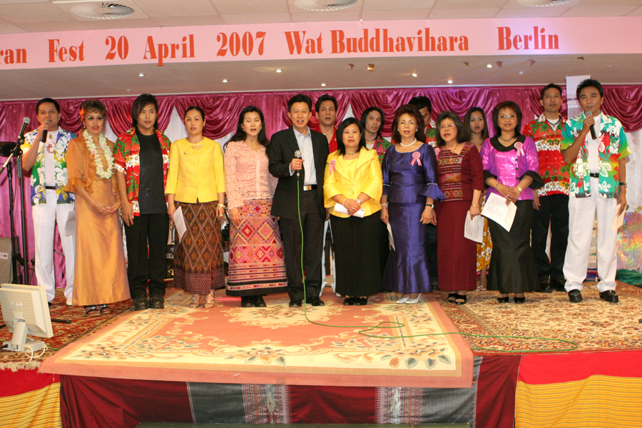 An Songkran feiern die thailändischen Buddhisten das Neue Jahr. In Berlin haben sie dies am 20. April getan. Eine Woche später als üblich. Das Fest fand in einem türkischen Hochzeitssaal im Wedding statt. Alles in Weiß und Rosa gehalten. Problematisch die geringe Deckenhöhe. Auch die Bühneneinsicht war nicht immer möglich. Nun zum Positiven: Etwa 400 Berliner Thai & Farangs fanden sich ein und feierten ausgiebig. Zuvor eröffnete der Militär-Attaché das Fest. Das gemeinsame Singen des Königsliedes stand natürlich vorne an. Der Abt des Wat in Wittenau begoss eine Buddha-Statue mit Wasser. Ein bunter und lauter Umzug trug die Miss Songkran vom letzten Jahr durch den Saal. Viele Sänger und Tänzer sorgten für echte Thai-Stimmung. Die Miss-Wahl hatten vier Durchläufe: Schönstes Kleid, Publikums-Liebling, schönste Mutter mit Kind und die eigentliche Miss Songkran mit Tochter. Bui wurde dabei 2. und zudem schönste Mutter. Das Gewinner-Team waren Mama Ladda mit Apinya, gesponsert vom neuen Thai-Imbiss Ton Oy. Eine goldige Comedy-Show sowie kräftiger Mo Lam von Noi fanden Anklang. Positiv auch die vielen Kids und Babys. Mathias Heinrich