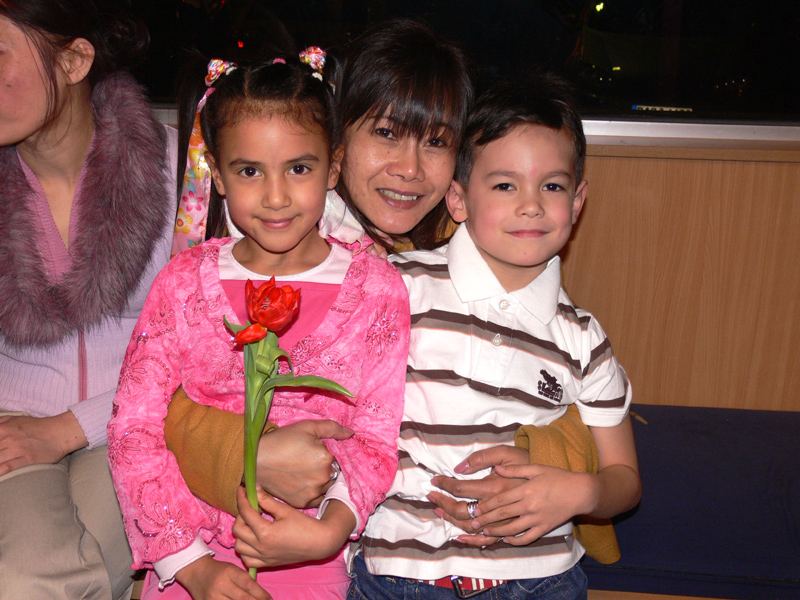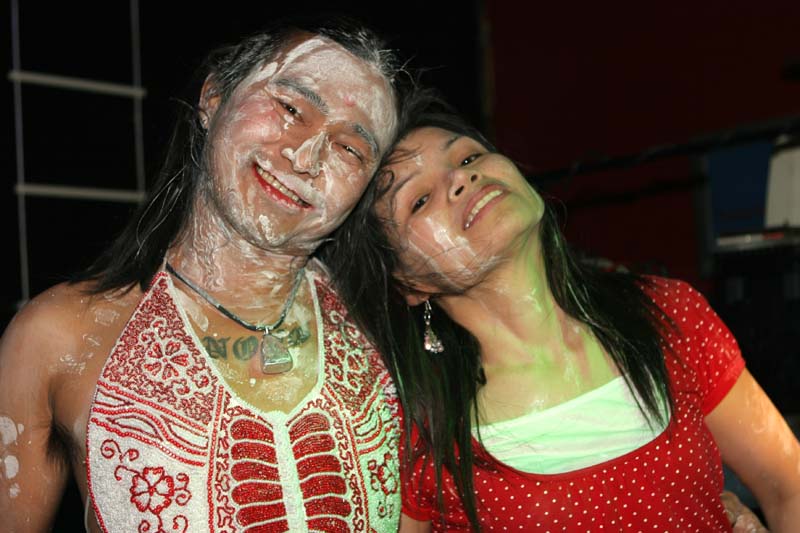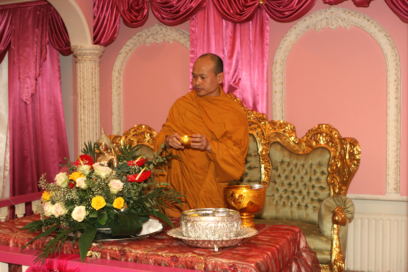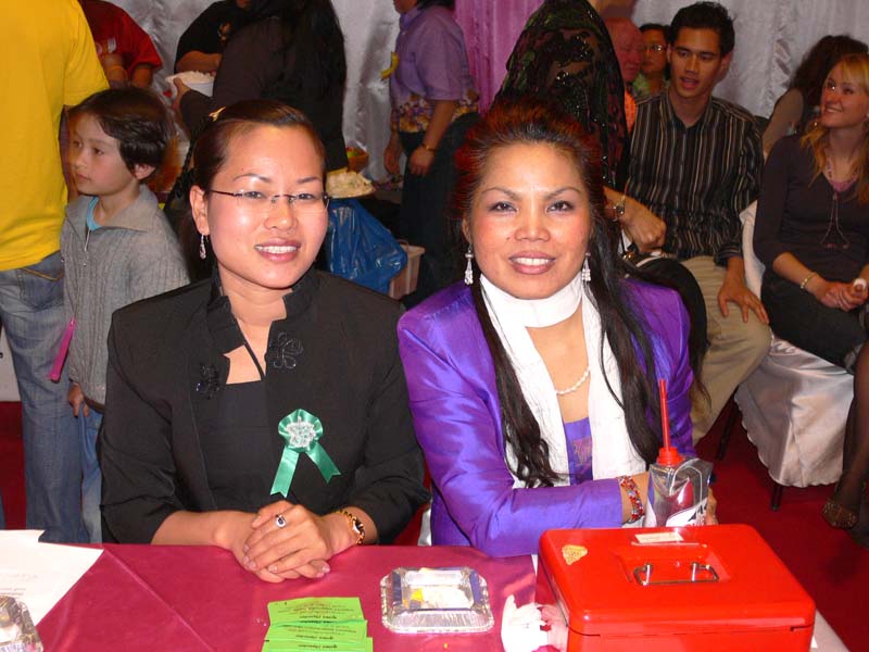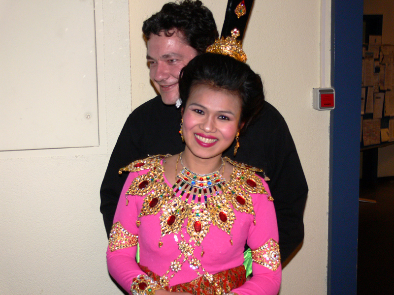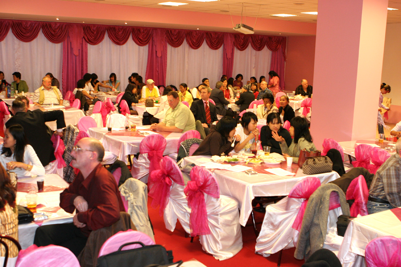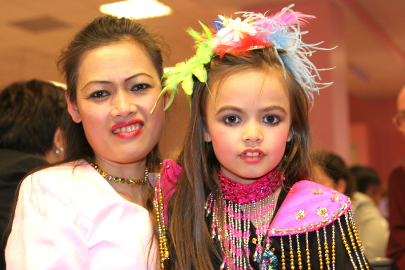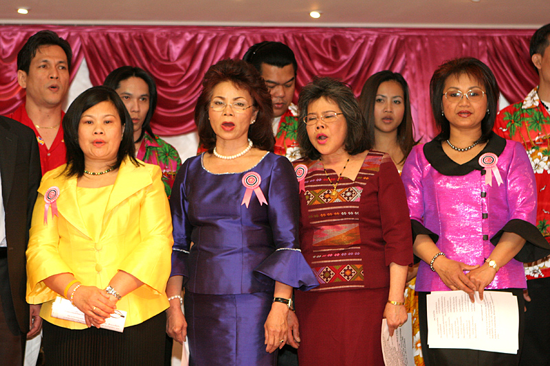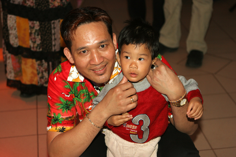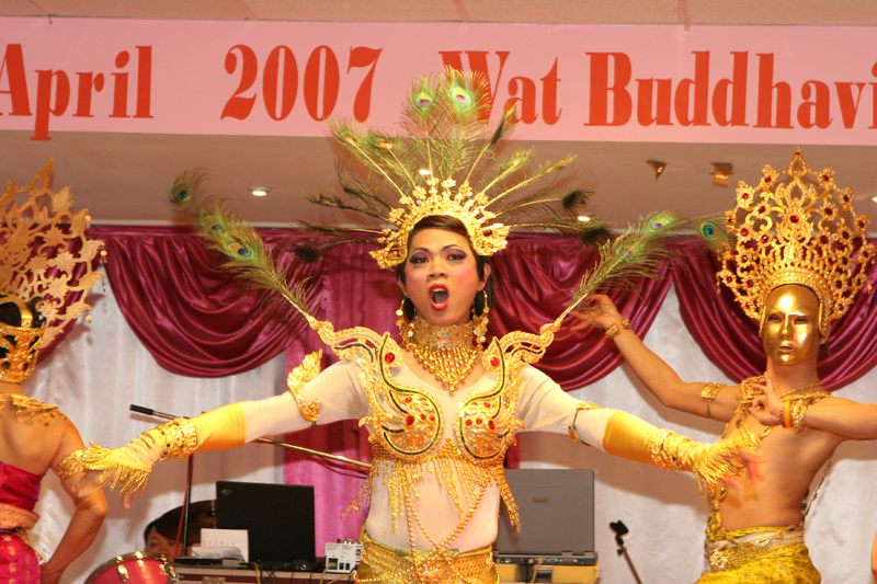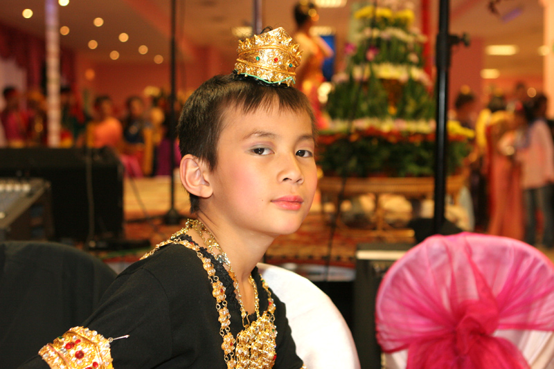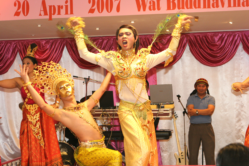An Songkran feiern die thailändischen Buddhisten das Neue Jahr. In Berlin haben sie dies am 20. April getan. Eine Woche später als üblich. Das Fest fand in einem türkischen Hochzeitssaal im Wedding statt. Alles in Weiß und Rosa gehalten. Problematisch die geringe Deckenhöhe. Auch die Bühneneinsicht war nicht immer möglich. Nun zum Positiven: Etwa 400 Berliner Thai & Farangs fanden sich ein und feierten ausgiebig. Zuvor eröffnete der Militär-Attaché das Fest. Das gemeinsame Singen des Königsliedes stand natürlich vorne an. Der Abt des Wat in Wittenau begoss eine Buddha-Statue mit Wasser. Ein bunter und lauter Umzug trug die Miss Songkran vom letzten Jahr durch den Saal. Viele Sänger und Tänzer sorgten für echte Thai-Stimmung. Die Miss-Wahl hatten vier Durchläufe: Schönstes Kleid, Publikums-Liebling, schönste Mutter mit Kind und die eigentliche Miss Songkran mit Tochter. Bui wurde dabei 2. und zudem schönste Mutter. Das Gewinner-Team waren Mama Ladda mit Apinya, gesponsert vom neuen Thai-Imbiss Ton Oy. Eine goldige Comedy-Show sowie kräftiger Mo Lam von Noi fanden Anklang. Positiv auch die vielen Kids und Babys. Mathias Heinrich