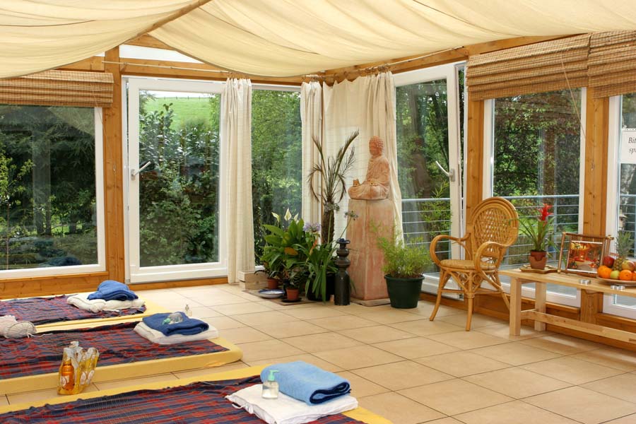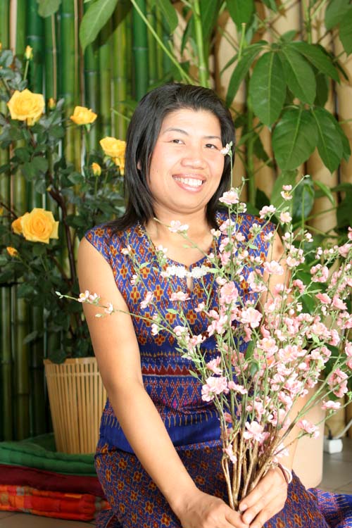 Ewig lange 620 Km Autobahn von Berlin aus, und ich bin da: in einer der schönsten traditionellen Thaimassagen Deutschlands. Rose, ein kleiner Ort, der zur Gemeinde Ruppichteroth gehört, ca. 50 Km östlich von Köln. Betreiber ist der 1941 geborene Dr. Jürgen Schulze, überall bekannt als Jojo. Seine Frau Nittaya hat er vor 11 Jahren im Süden Thailands bei seiner ersten Reise ins Land des Lächelns kennen gelernt. Die gelernte Masseurin hat ihre Ausbildung im Wat Po absolviert. Der promovierte Betriebswirt und inzwischen ordinierte Mönch war von dem Zusammenspiel zwischen Yoga und Akupressur so beeindruckt, dass er selber die Schule besuchte und diese Kunst erlernte. Was lag da näher, als die 2.500 Jahre alte, aus Indien stammende Massagetechnik den Menschen in und um Rose näher zubringen. 1999 wurde der Förderverein THAI KULTUR gegründet. Mit dem gedanklichen Hintergrund, den thailändischen Frauen Arbeit zu verschaffen, und zwar Massagearbeit ohne Sex, ging Jojo sofort an die Arbeit und baute sein Haus um. 2004 war nach mühevoller, aber erfolgreicher Aufklärungsarbeit unter der Bevölkerung der Zulauf der Kundschaft so riesig, dass ein großer Anbau fällig war. So entstanden fünf offene Räume auf einer Fläche von 250 qm. Die Einmaligkeit des - man kann schon sagen paradiesischen - Massagetempels besteht in der typischen thailändischen Ausstattung: Blumen in herrlichen Farben schmücken die Buddhafiguren. Zwei Meter hohe Palmen- und Bambustöpfe geben den Räumen, dessen Wände und Decken mit Bambusrohren ausgestattet wurden, ein beruhigendes Ambiente. Bilder mit Thaimotiven und Bambus-Ornamente zieren die Wände. Schon im Entree steigt dem Besucher der angenehme Duft ätherischer Öle in die Nase. Die beheizten, auf dem Boden liegenden Matratzen bringen wohlige Wärme in den Körper. Einfach hinlegen, entspannen, die Wärme spüren und die Seele baumeln lassen...