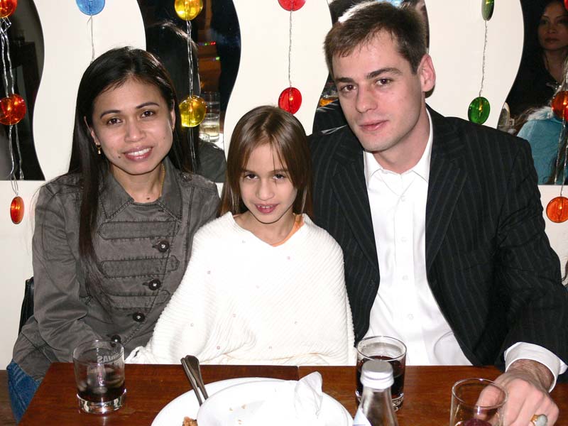 Die kleine Familie komplett in der Berliner Karaoke-Bar Blue Sky.