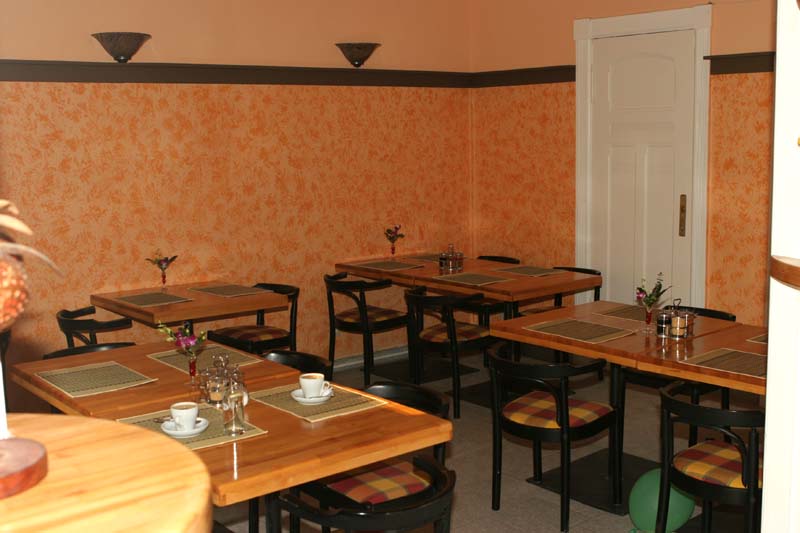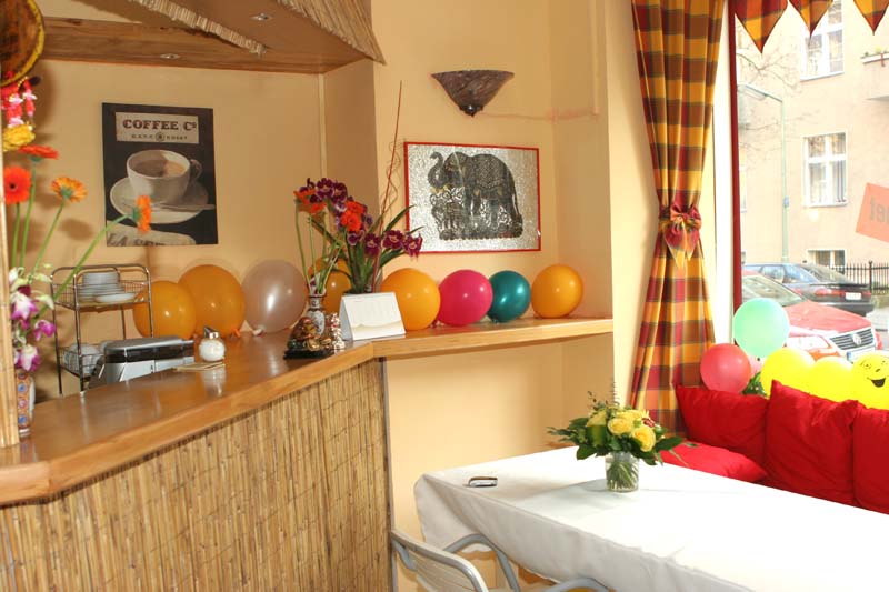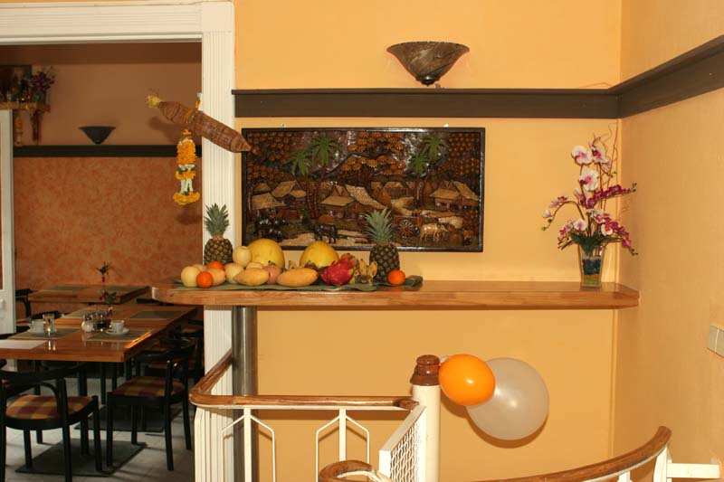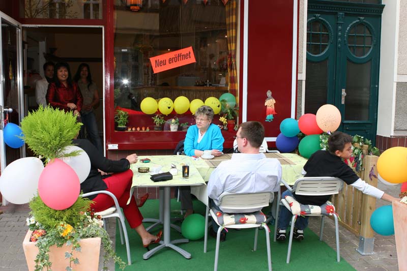 Mit dem Thairestaurant Dokmai (zu dt. Blume) ist am 2. April neues Leben ins ehemalige Arisa-Café eingezogen. Nahe der Thai-Botschaft gelegen verspricht es guten Zulauf zu bekommen. Chefin Noi und ihr Sohn Narong haben viel investiert und eine Vollküche eingebaut. Die Räume sind schlicht und freundlich hell gehalten. Ein schöner Blickfang ist der mit Stroh verkleidete Tresen. Der Clou sind die vier Plätze auf dem Balkon mit Blick auf die Straße. Noi kennen die Berliner dank ihrer leckeren Brat-Bananen. Sie bietet Spezialitäten wie Suki Jaki, selbstgemachte Nudeln sowie chinesische Medizin-Suppe mit Bittergurke. Die Preise sehr moderat: Khao Pat 4,- Euro, Sate 3,- und Gungs ab 6,- Euro. Bei Sonne lädt die Terrasse ein. VieI Glück Euch! Mathias Heinrich