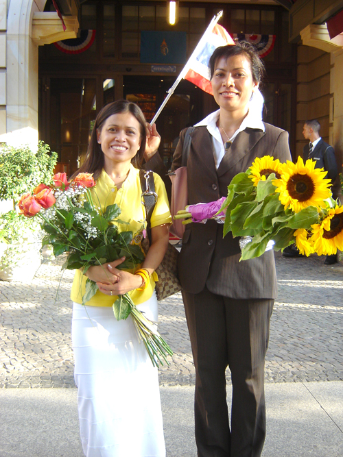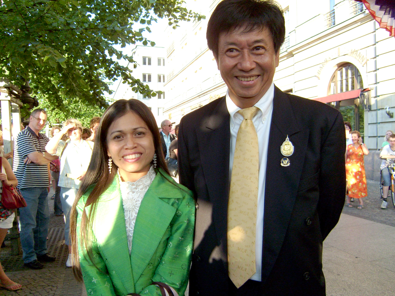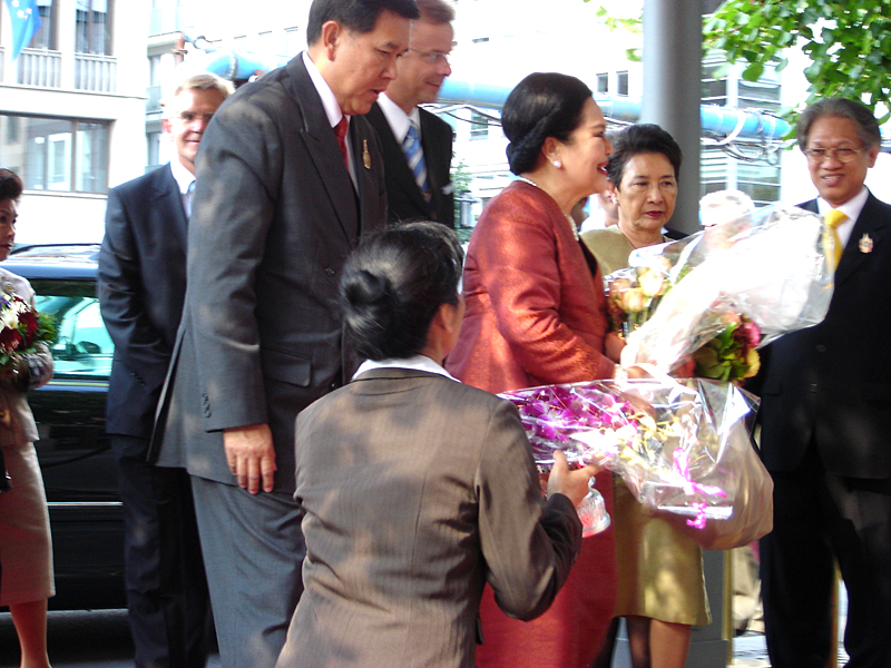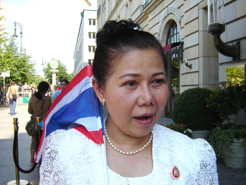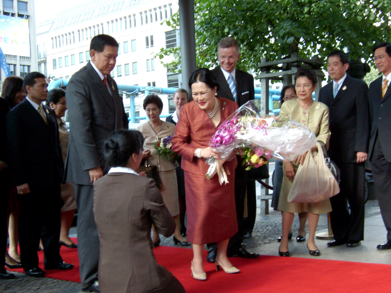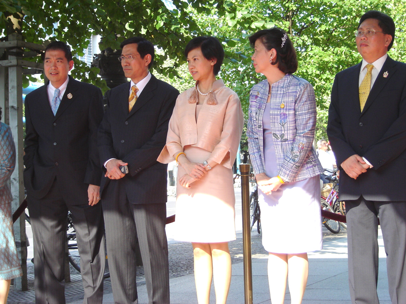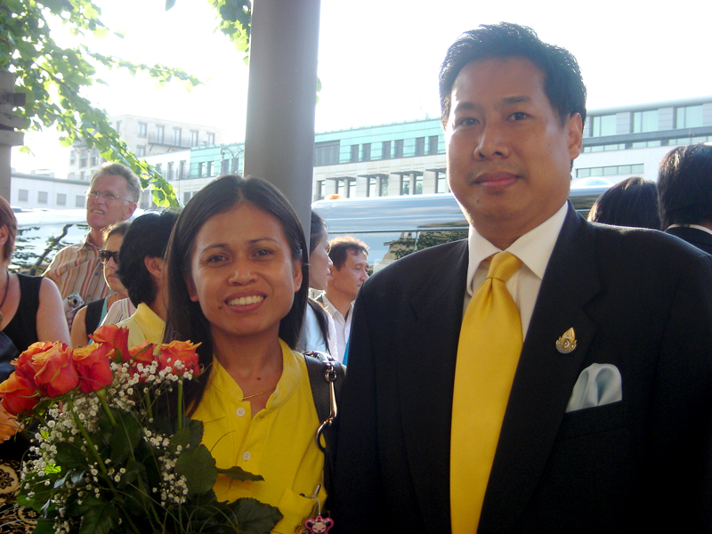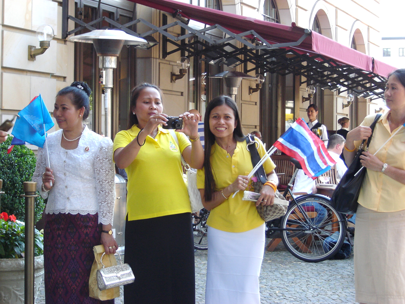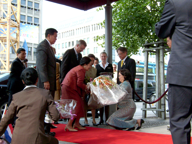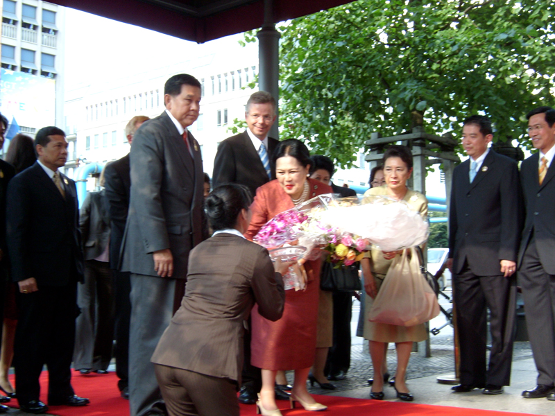 In Berlin warteten viele Thailänder vor dem Hotel ADLON auf das Erscheinen ihrer geliebten Königin. Und sie wurden auch belohnt. In München nahm Ihre Majestät an mehreren Empfängen und Festlichkeiten teil.