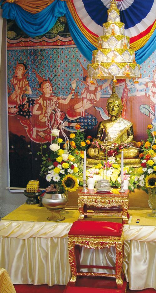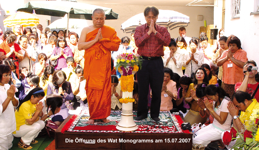 Die Thailänder in München und Umgebung wünschten sich ein geistliches Zentrum, das frei ist vom großen "Brimborium" der weltlichen Szene und ausschließlich eine Zuflucht für thailändisch-buddhistische Lebensweise und Meditation sein sollte. Dies ist mit der Gründung das Wat Buddhadhamma e.V. im Frühjahr 2007 und nun mit der feierlichen Einweihung verwirklicht worden. Klar, dass es kein lieblicher Tempelbau sein kann, aber die häuslichen Räumlichkeiten bieten für unterschiedliche Zusammenkünfte Platz, und das Ambiente ist liebevoll nach thailändischer Art eingerichtet, so dass sich auch ein Farang "wie daheim in Thailand" fühlt.