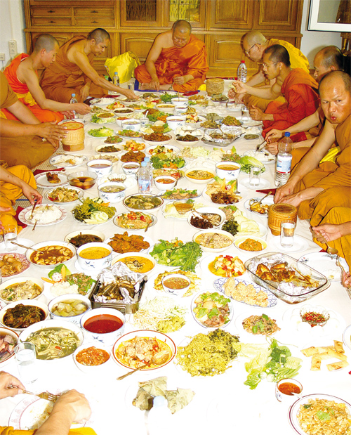 Ein besonderes Ereignis ist der morgendliche Almosengang der Mönche, bei dem sie Essengaben von den Gläubigen empfangen. Aber man muss schon zeitig aufstehen, um den Almosengang einmal live zu erleben oder noch besser, selbst Essen zu spenden, denn er findet etwa gegen 06.00 Uhr morgens statt.