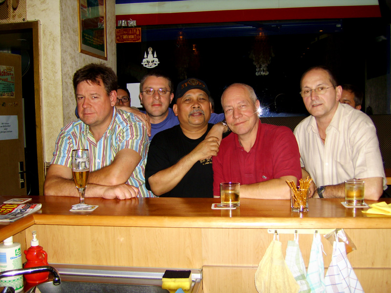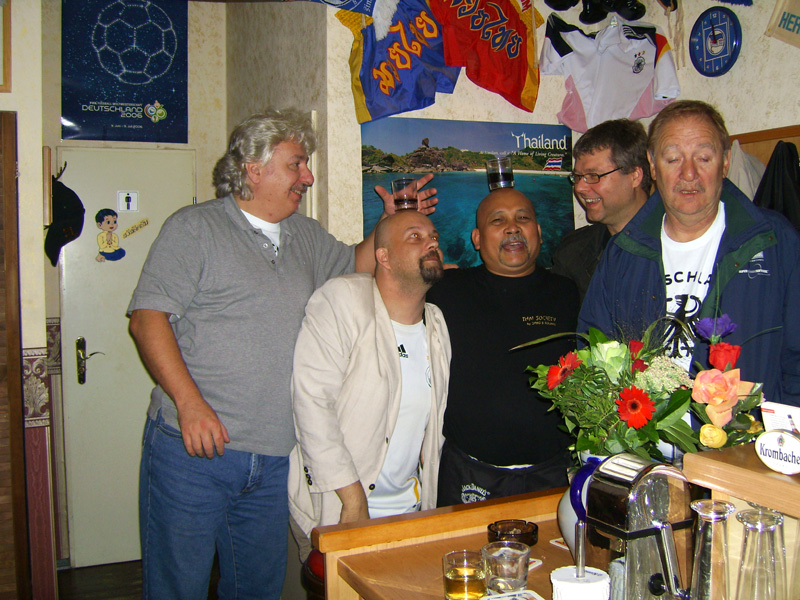Die THAIGER-Fußballer entwickeln sich wieder prächtig. Letztens waren 13 echte Kerle da, das runde Leder ins das Eckige zu kicken. Die Location Squash-Center am Thai-Park war offensichtlich gut gewählt. Es gibt drei überdachte Plätze, Umkleide, Dusche, Sauna inclusive, danach gutes Essen und Bundesliga auf großen Flachbildschirmen. Lässt sich also gut an. Mitspieler aus der Thai-Szene sind weiterhin willkommen. Alter egal. Müssen keine Profies sein. Wir machen das schon. Immer Samstag 12 Uhr ebenda. Mindestens 11 Freunde und Abnehmen sind garantiert, sagen Helmut, Thomas, Stefan, Putte, Ulti, Ronald, Stöpsel, Carsten, Gembo, Erwin, Gek, Nad, Tat, der Rum-Treiber, u.a... Prost!