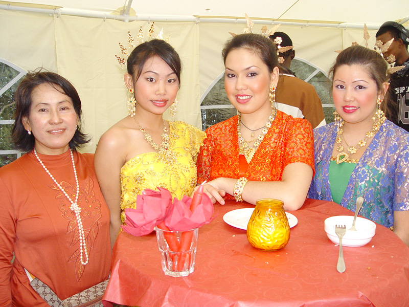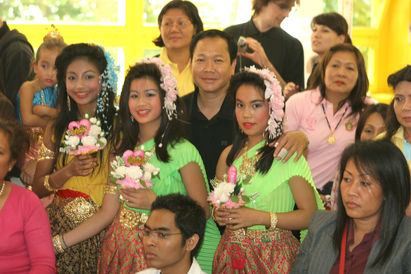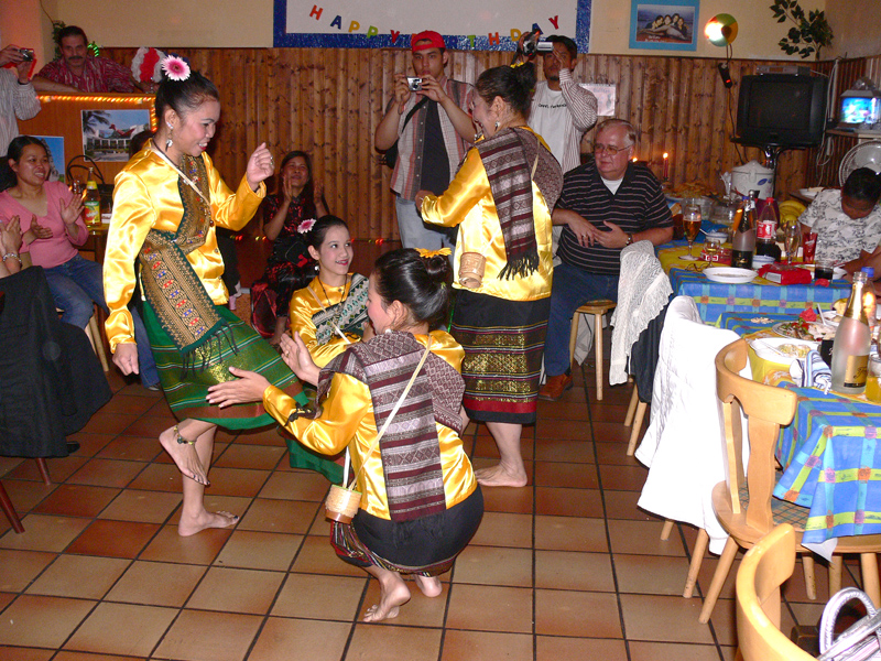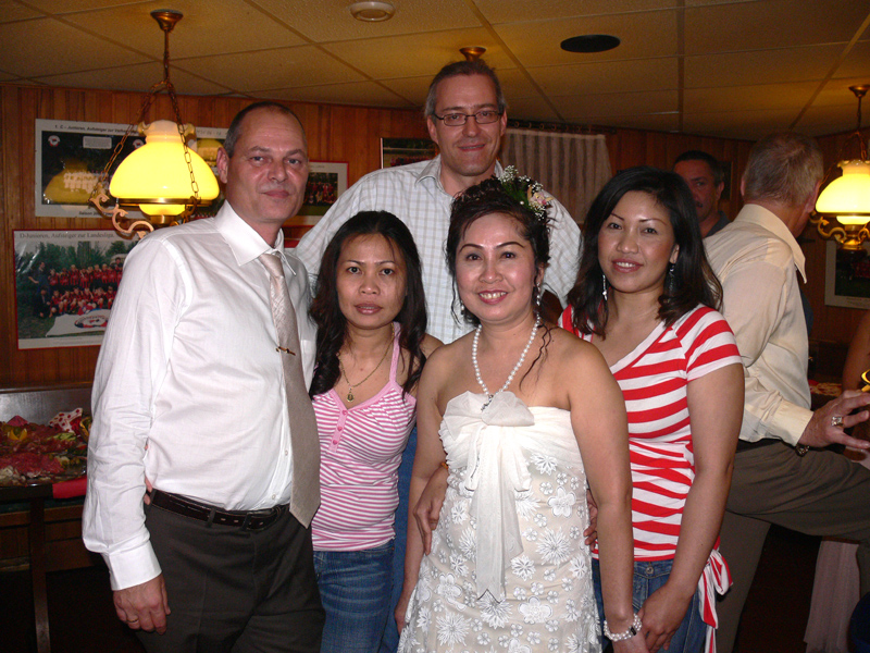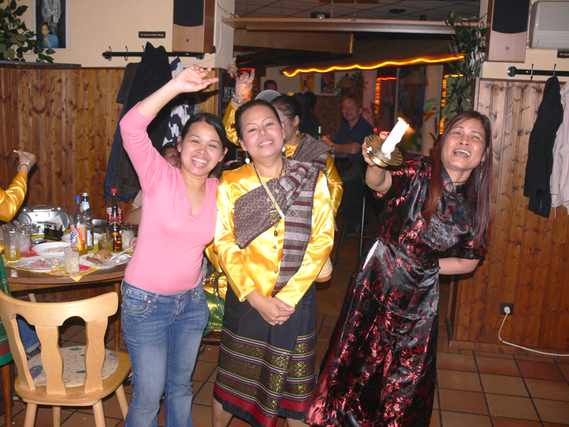 Weiter im Text: Dann Eh mit ihren beiden Schwestern und einer großen Familie. Die strahlende Schöne in Weiß nebst Freund gehörte auch dazu. Richtig thaimäßig wurde diese Familienfeier, als eine komplette Thai-Tanzgruppe Programm machte. Porni auch dabei.