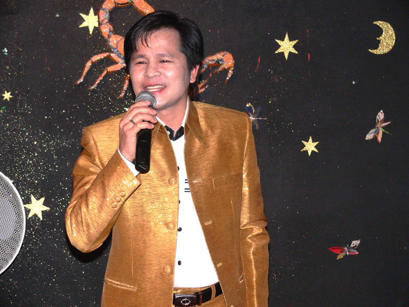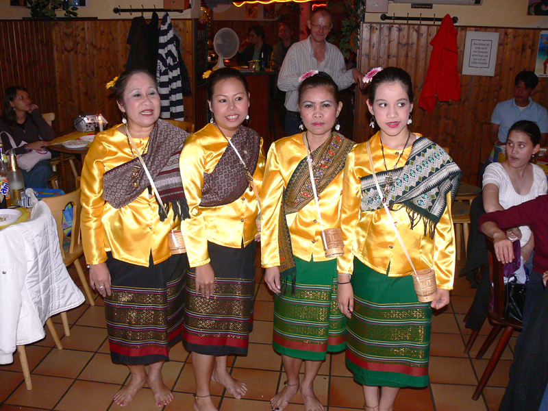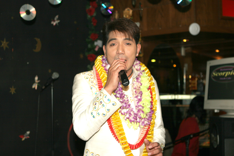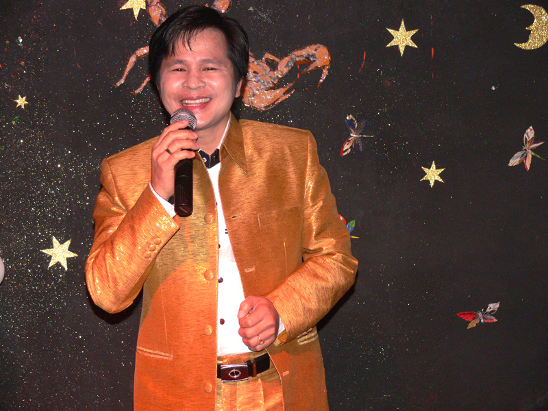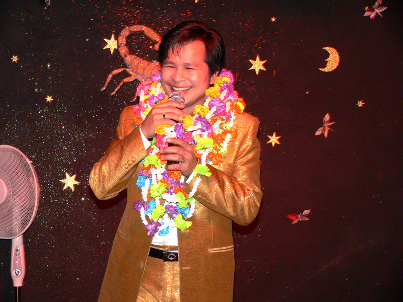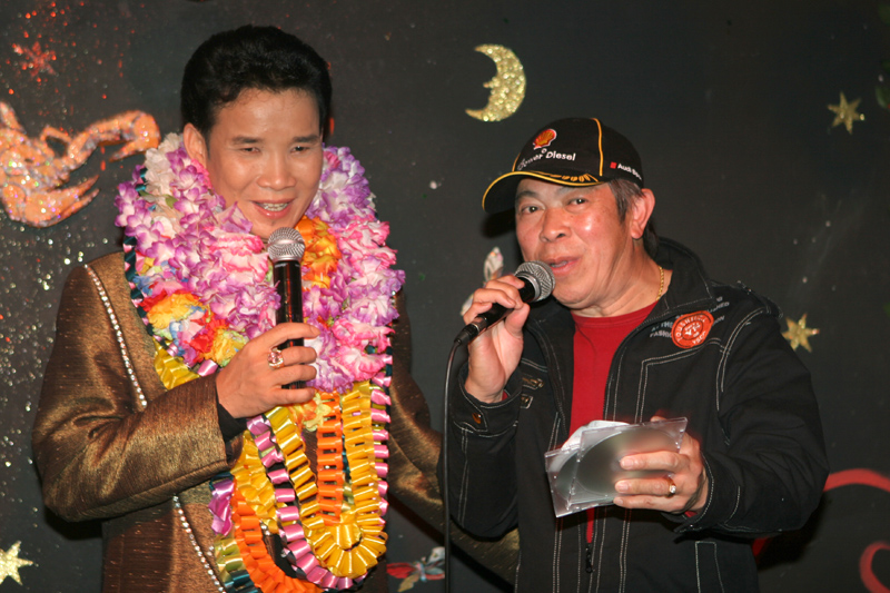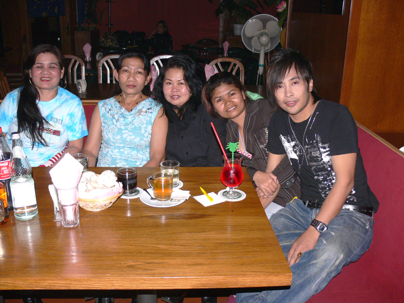 Am 16. September dann hatte das Scorpion erneut zum Konzert gerufen. Eingeladen waren auch diesmal zwei Sänger: Zum Ersten der aus Bangkok stammende und dort lebende Thasphol Homphawong. Der 38-Jährige im weißen Sakko bevorzugt die etwas modernere Musikrichtung. Er war zuerst in Belgien und reiste nach dem heutigen Auftritt weiter nach den Niederlanden und der Schweiz. Zum Zweiten stellte der eigentliche Star und Molam-Sänger Somchith Bothong sein musikalisches Können unter Beweis. 25 Jahre Sängererfahrung garantierten einen souveränen Auftritt und entsprechenden Beifall. Wir erinnern uns noch an seinen Auftritt im ehemaligen THAI THEK. Stets ist Bothong erstklassig gekleidet. Er wirkt fast etwas steif. Doch mit Charme und vornehmer Zurückhaltung gewinnt er die Herzen der Zuhörerinnen. Noi in (Rot) war mit ihren Freundinnen gekommen. Auch die schöne Pan (von Kai) ließ sich wieder mal sehen.