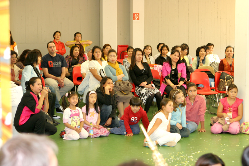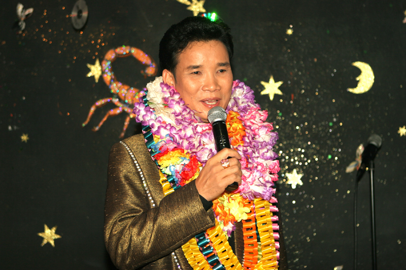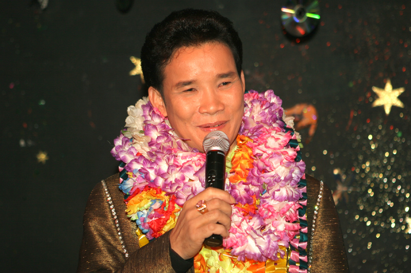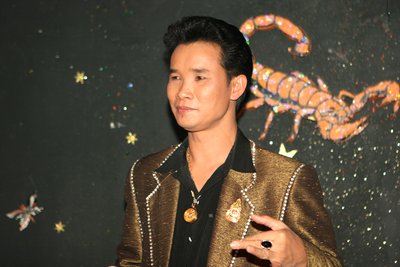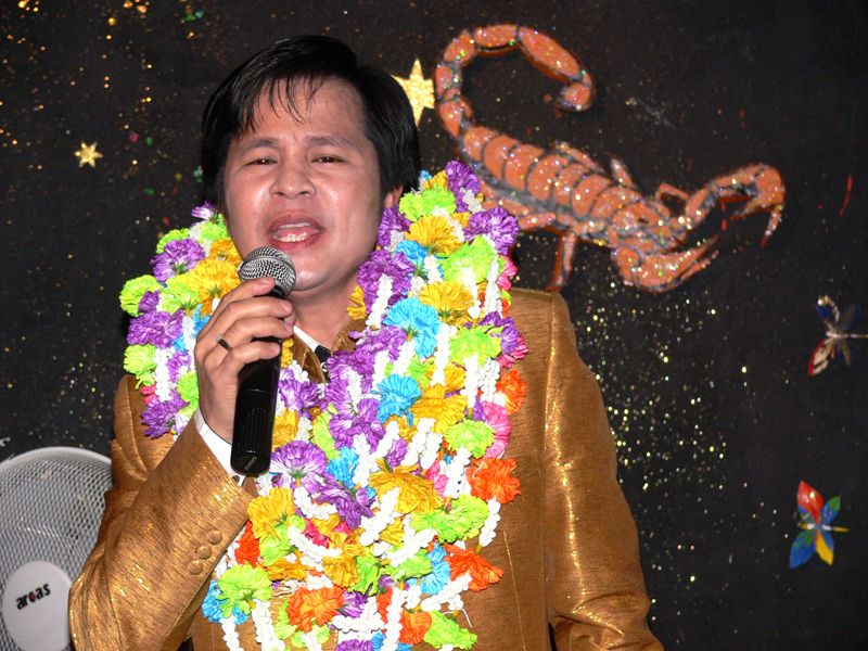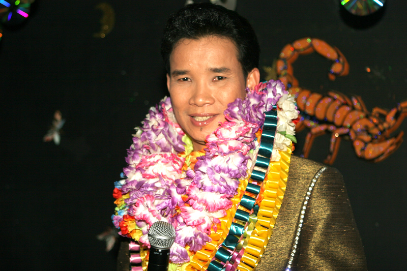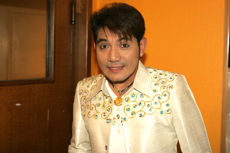 Am 16. September dann hatte das Scorpion erneut zum Konzert gerufen. Eingeladen waren auch diesmal zwei Sänger: Zum Ersten der aus Bangkok stammende und dort lebende Thasphol Homphawong. Der 38-Jährige im weißen Sakko bevorzugt die etwas modernere Musikrichtung. Er war zuerst in Belgien und reiste nach dem heutigen Auftritt weiter nach den Niederlanden und der Schweiz. Zum Zweiten stellte der eigentliche Star und Molam-Sänger Somchith Bothong sein musikalisches Können unter Beweis. 25 Jahre Sängererfahrung garantierten einen souveränen Auftritt und entsprechenden Beifall. Wir erinnern uns noch an seinen Auftritt im ehemaligen THAI THEK. Stets ist Bothong erstklassig gekleidet. Er wirkt fast etwas steif. Doch mit Charme und vornehmer Zurückhaltung gewinnt er die Herzen der Zuhörerinnen. Noi in (Rot) war mit ihren Freundinnen gekommen. Auch die schöne Pan (von Kai) ließ sich wieder mal sehen.
