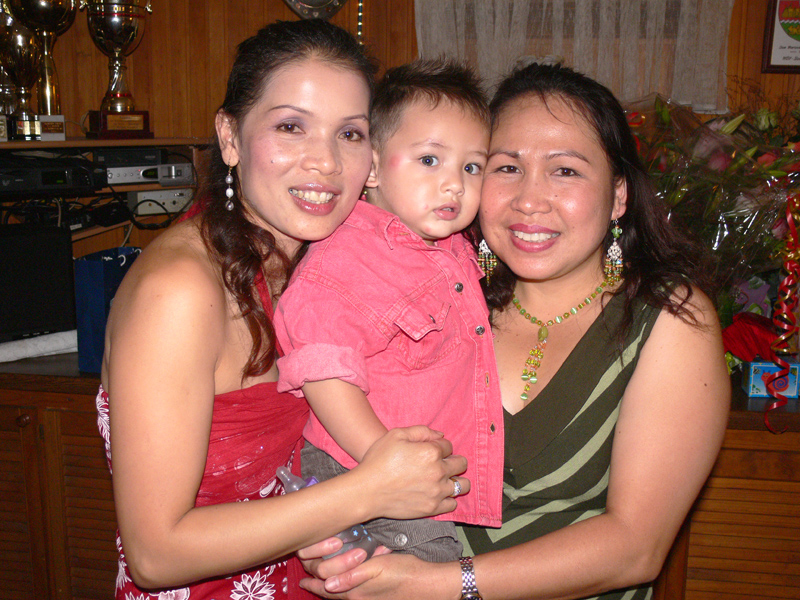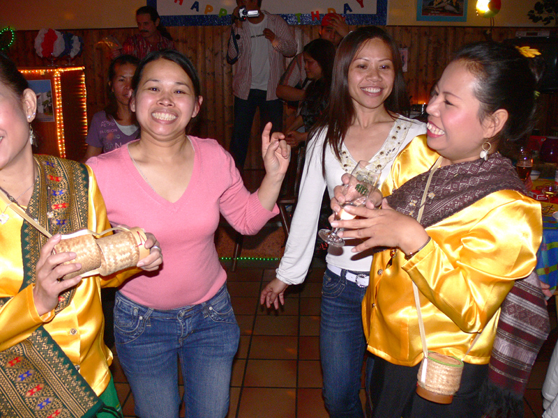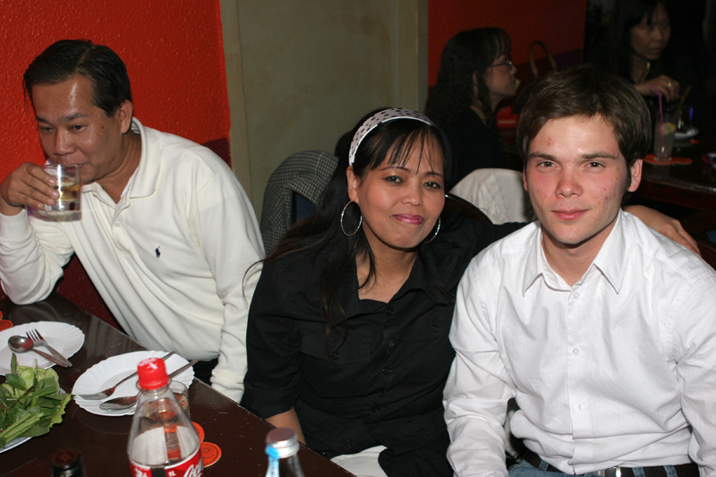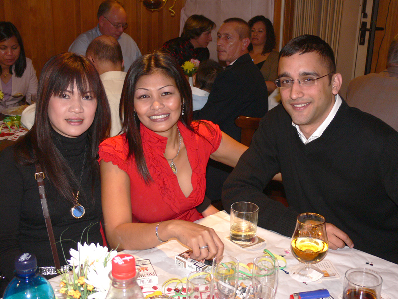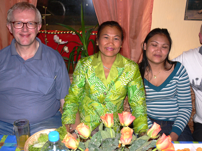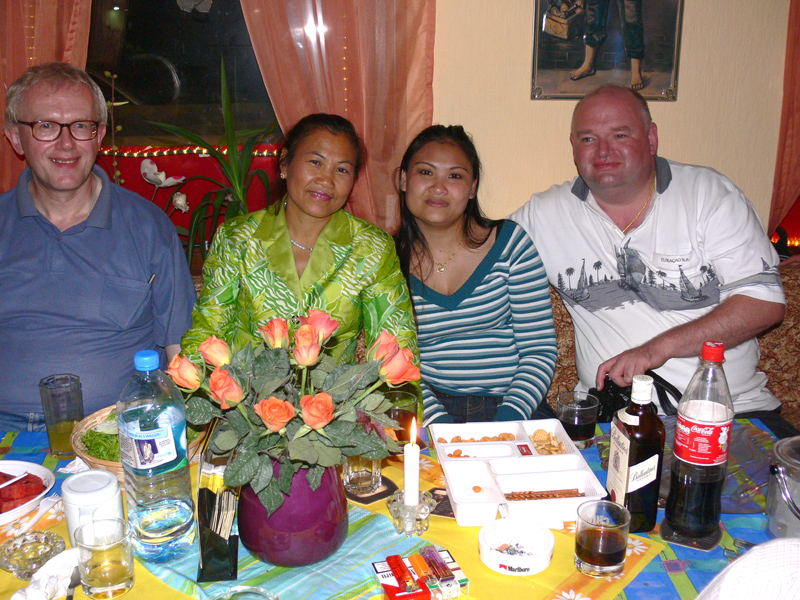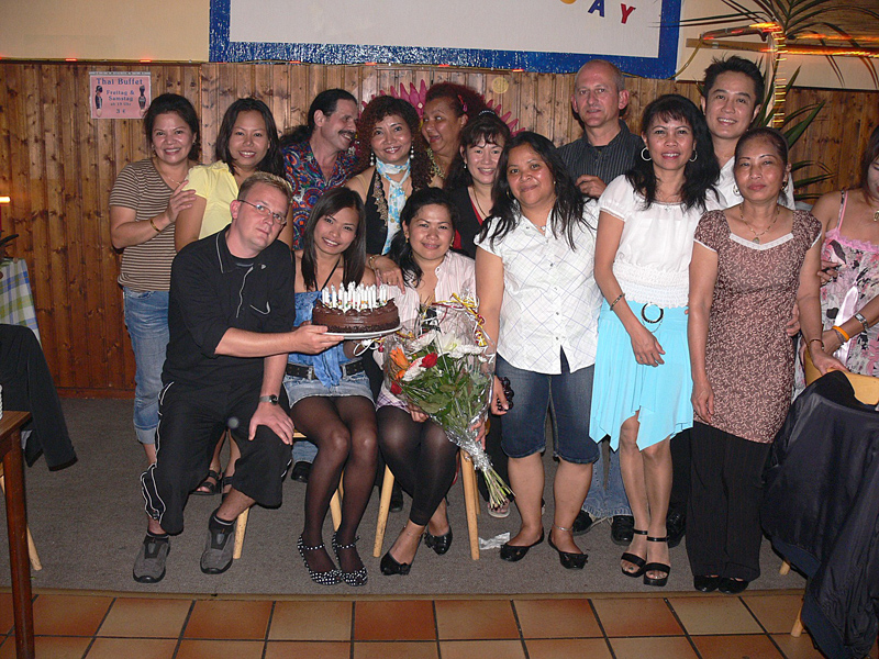 Unter den Gästen: Ronalds Eltern und Söhne sowie die Enkelchen, Nalees Schwester, das ganze lustige Djantschai-Team, Ronalds handfestes Bau-Team, Aen aus Hamburg und Dr. Reiner Willms, Sa elegant mit Bernd vom TAR-Reisebüro, die liebe Pi Deng im blauen Thai-Gewand & Roman, die Freunde Pen und Gon sangen gut, Wan tanzte flott, DJ John machte einen prima Job wie immer, Regina eher zurückhaltend, dann die Kantharat-Chefin Wee im knallroten Traum sowie Wolfgang nebst Gattin u.a.