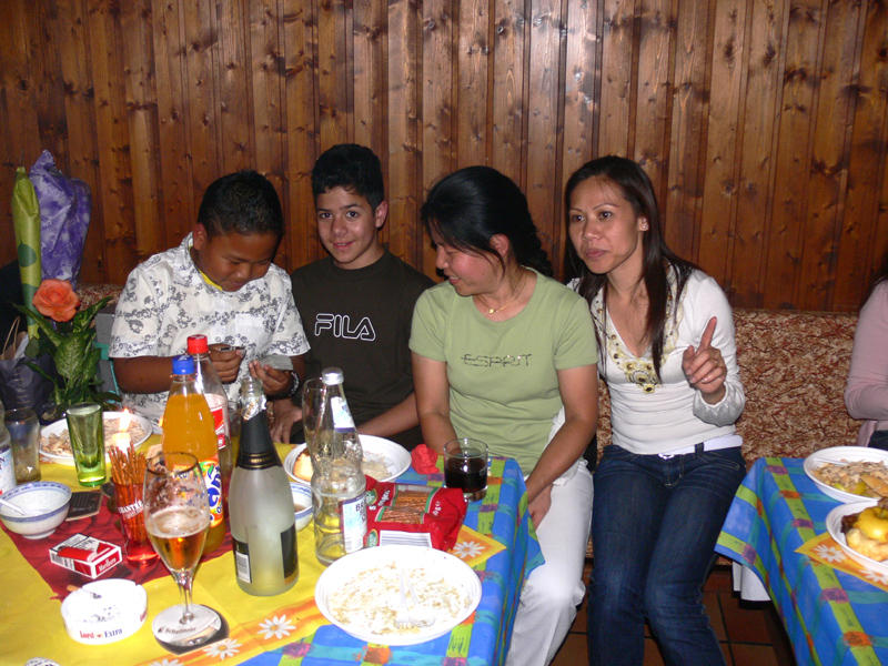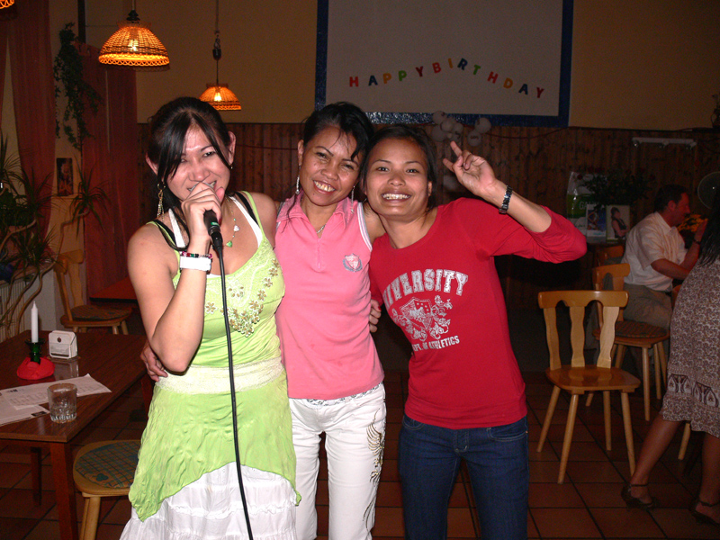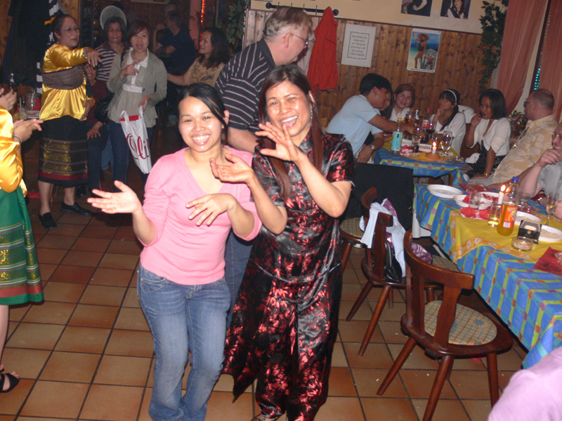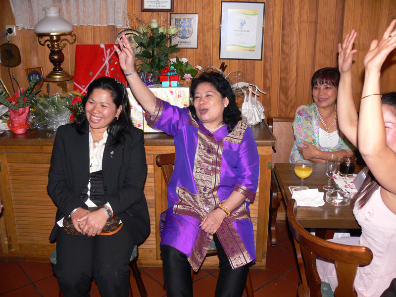 Zunächst wurde allerlei Brauchtum getrieben. Geschirr zerschlagen, sich geküsst und angetanzt, dann der Brautstrauß geworfen: Apai hatte das Glück. Und wie auf jeder zünftigen Thai-Party Karaoke am laufenden Band und Stimmung ohne Ende. Das war Klasse! Für die Kids gab es ein extra Spiel-Zimmer. Alles wohl durchdacht und doch so locker. Viel Glück Euch Beiden! Euer Mathias Heinrich