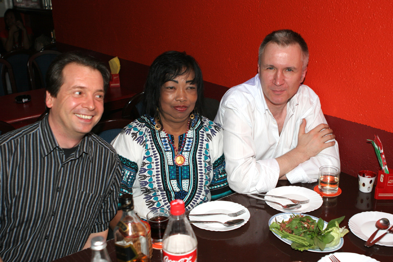 Es ist wohl kein Zufall, dass diesmal alle Geburtstagskinder in Berlin-Neukölln, und zwar im relativ neuen LANNA, erwischt wurden. Die gemütliche Thai-Karaoke-Bar und Restauration hat sich für nachmittags und am frühen Abend zum ersten Anlaufpunkt in Neukölln gemausert. Es gibt eine gute Thai-Küche, jeden Freitag ein ansprechendes Thai-Buffet, kleine Preise, mit Dung Ding eine nette Thai-Wirtin (ohne Gabel als Kuli), einen Shuttle-Service und eben die vielgeliebte Karaoke. Alles so, wie es Thais mögen. Jüngst wurde eine kleine Bühne mit DJ-Pult aufgebaut, dann ein großer Flachbildschirm eingekauft. Es wird also.
