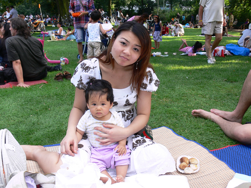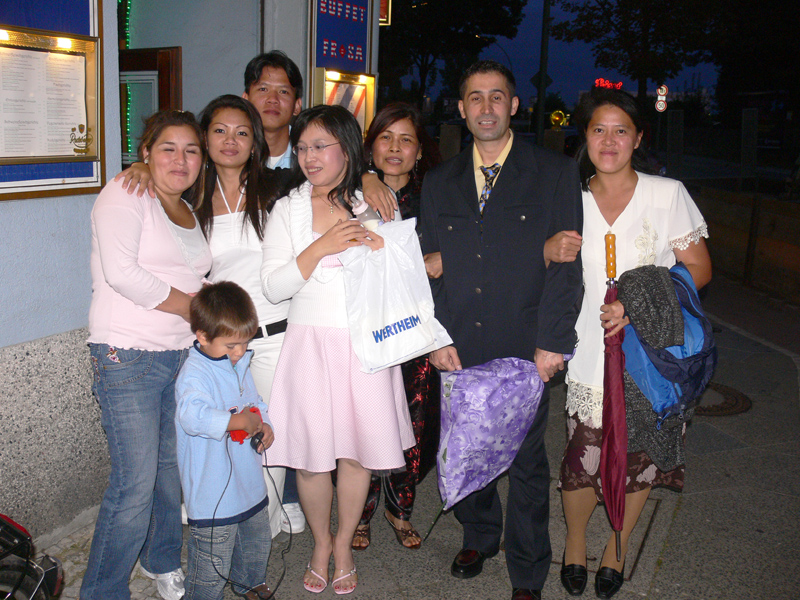 Echtes Thai Leben im Prenzlauer Berg. Auf der Wichertstraße ist richtig was los. Pi Deng ist gleich um die Ecke, auch Mon mit ihrem Baby Nattapon (Nong Pon) ist in der Nähe. Vor der Thaimassage Lotus tummeln sich kleine Thai-Minis. Als da wären Vanessa von Bui und Nadine, die mit Roller und Fahrrad den Bürgersteig unsicher machen. Auch ein kleiner Bub ist dabei. Ist von Buis Schwester. Der plappert immer Guggeuk, Guggeuk und meint damit Flugzeug. Ali vom Butterfly kommt aus seinem Spätverkauf und Internet-Café und amüsiert sich prächtig. Dann kloppt Ali dem Zwerg auf den Hintern, der aber mit dicken Pampers wohl abgefedert ist. Doch Vorsicht, Ali. Wenn der Mini-Mann mal groß wird und sich erinnert, dann bist Du alt und fällig. Aber das Schönste ist der Schichtwechsel im Spätverkauf. Dann kommt Alis wunderschöne Tochter Burcu. Die ist so schön, dass einem dafür die Worte fehlen. Wow!