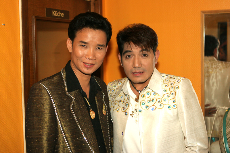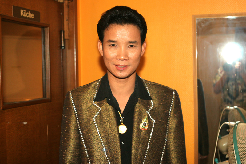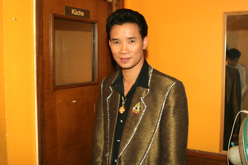 Das war ein Doppelpack im Berliner Scorpion: Zuerst sollte am 7. September ein Konzert mit Sitiporn Suntarapoth und Renu Putai stattfinden. Doch sie haben kein Visum bekommen. Dafür trat dann Pai Atapon auf. Der Mann im goldenen Anzug gab sein Bestes. Porni war sehr angetant und bedankte sich ganz thailike auf der Bühne. Edd moderierte wie immer und sang. Sirina, Withee und Nit ganz zufrieden.