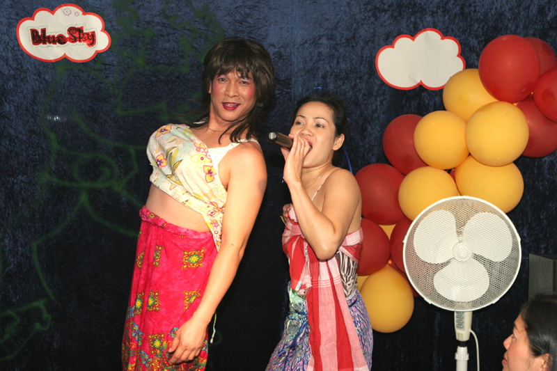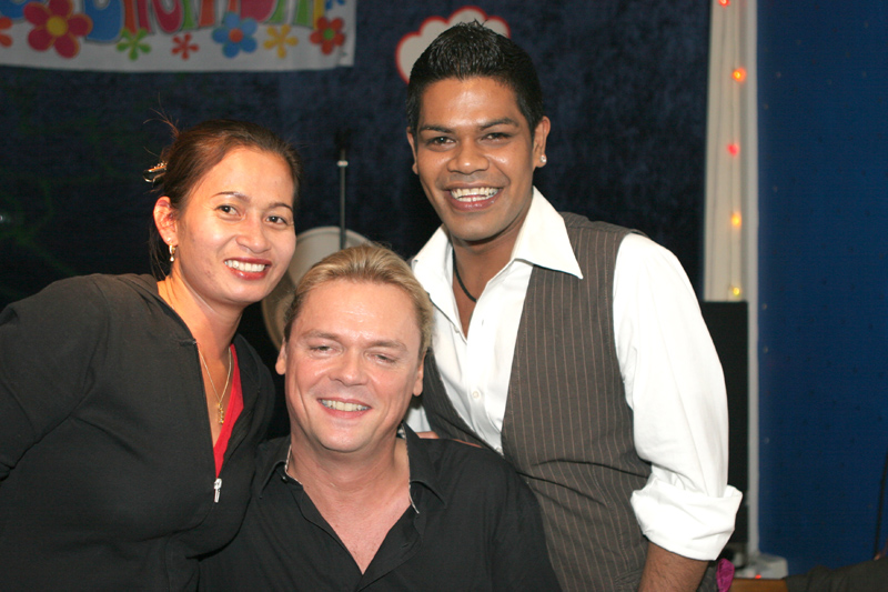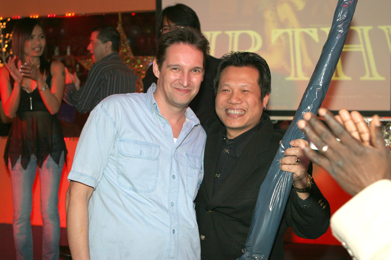 Dass das Blue Sky heuer brechend voll war bedarf eigentlich keiner besonderen Erwähnung. Unter den fröhlichen Gästen waren Samai & Heiner, die die ersten Monate ihrer frischen Ehe hinter sich haben, Bernd mit Sa vom TAR-Reisebüro, unsere Party-Spezialisten Moses und Yad, die in Thai-Kreisen bekannte Sabine, diesmal mit Ehemann Manfred (welch Seltenheit), Bovorn mit Gattin Ingrid und viele andere Gäste.