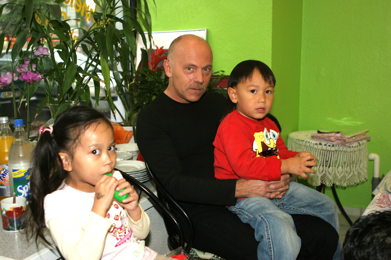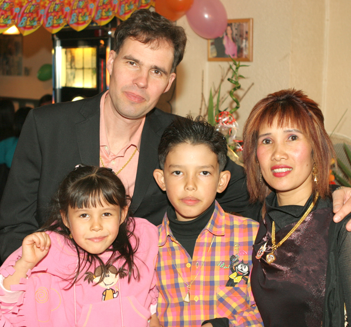 Die Thai-Kneipe MINT in der Sesenheimer Str. 17 ist klein, aber urgemütlich. Ein Berliner Treffpunkt, der zum Gedankenaustausch wie geschaffen ist. Familienpartys finden bei Jürgen besonderen Anklang. Dieser Meinung war auch Sudarat, Rufname Fed. Sie kam vor 10 Jahren aus der 70 km nördlich von Bangkok liegenden ehemaligen Hauptstadt Siams, Ayutthaya, nach Berlin. Die fleißige Thaifrau hat neben ihrer Arbeit bei einer bekannten Berliner Firma noch die beiden Kinder Robin (10) und Katharina (5) zu versorgen. Und natürlich den Mann ihrer Träume, den sie 1998 heiratete. Wolfgang arbeitet für eine Kanzlei als Spezialist für Verkehrsrecht.