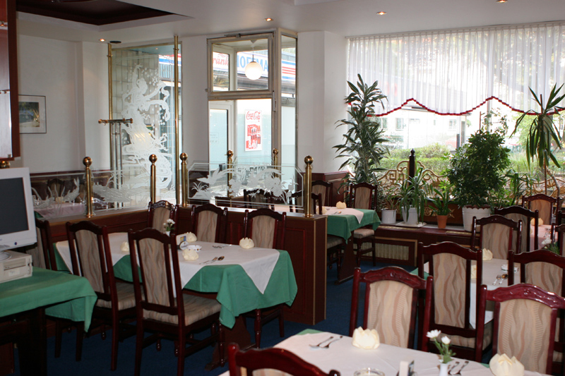 Doch nun zum Restaurant. Es befindet sich in Spandau, in der Pichelsdorfer Straße 65. Ein großes Schild mit der thailändischen Fahne, die an einem Mast befestigt ist, erleichtert dem Autofahrer die Suche; denn das Restaurant liegt leicht versetzt hinter einem gestalteten Vorgarten. Auf etwa 70 m² sind Tische mit mehr als 50 Sitzgelegenheiten großräumig verteilt. Die Einrichtung ist gediegen und übersichtlich. An den Wänden hängen Bilder mit Motiven aus Thailand. Besonders auffallend sind die großen, runden, leicht gewölbten Beleuchtungskörper, die in die Decke eingelassen sind. Die darauf befindliche Glasmalerei ist stilvoll, schafft Atmosphäre und ergibt ein indirektes Licht. Bei Sonnenschein hat der Gast die Möglichkeit, Speisen und Getränke unter freiem Himmel einzunehmen. Dazu bietet der Freisitz Platz für weitere 50 Personen.