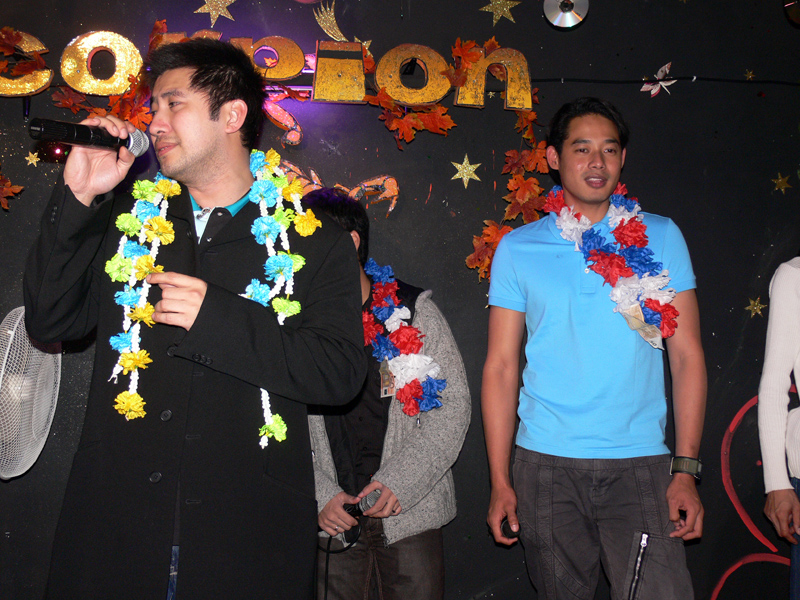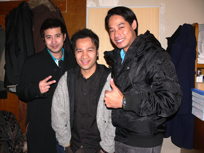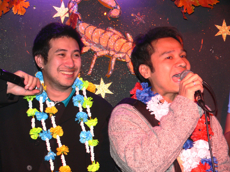 Kommt er nun oder kommt er nicht? Das war die spannende Frage, die bis zum Schluss offen blieb. Trotz Einladung gab es in Bangkok Probleme, die nichts mit dem Visum zu tun hatten (thailändische Medien berichteten über einen Vorfall im Flieger). Letztendlich ist das alles schnuppe; denn Superstar Ganchai, der keine Starallüren zu haben scheint, erschien pünktlich am 26.10. im Berliner Scorpion. Während einige Damen seelenruhig und geduldig auf ihr Idol warteten, tanzten sich andere Mädels im Vorfeld schon mal warm. Yad ließ seine Stimme erklinken, und DJ John brachte die zumeist weiblichen Zuhörer mit seinen Vorträgen so in Schwung, dass der ganze Saal mitjubelte. So wurde die Wartezeit in bester Stimmung und Laune überbrückt, bis Num mit Begleitung weit nach Mitternacht die geschmückte Bühne betrat (was Thai-Zeit bedeutet wurde heute nacht besonders deutlich). Schier unglaublich war die Begrüßung der Fangemeinschaft. Man hatte richtig Mühe, die Damenwelt davon abzuhalten, auf die Bühne zu stürmen. Djui war wieder gut drauf, und Jürgen vom MINT ganz aus dem Häuschen. Alles im grünen Bereich.