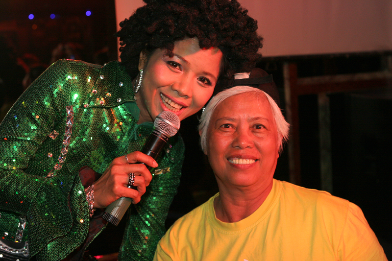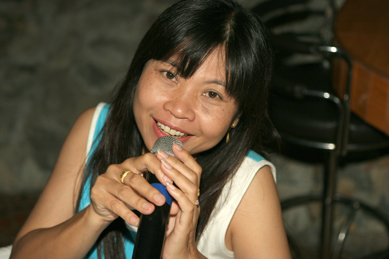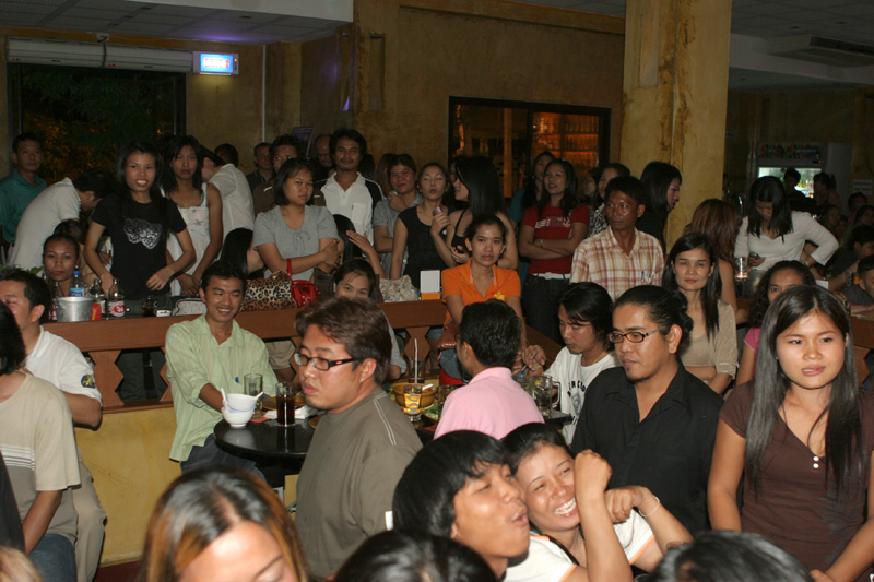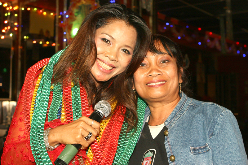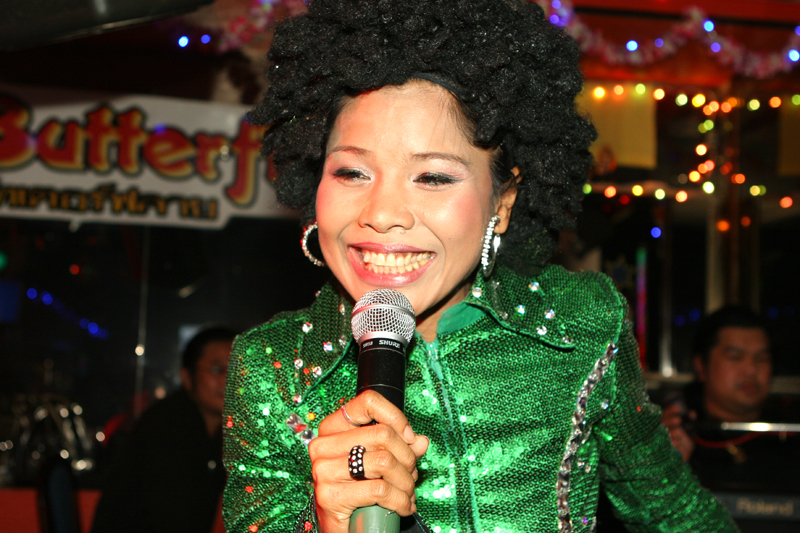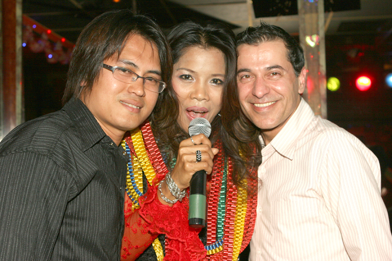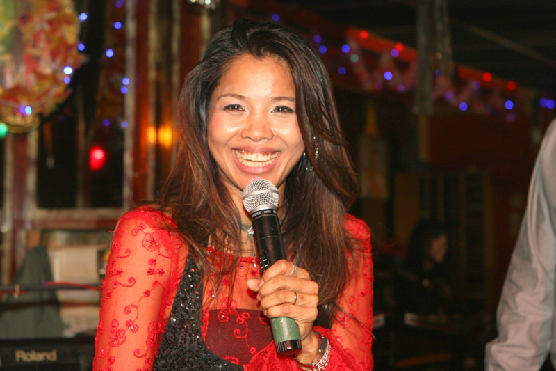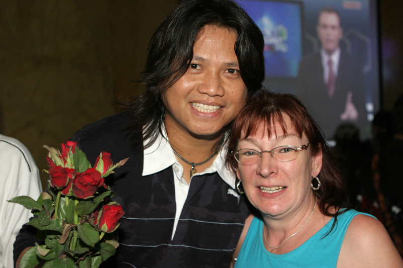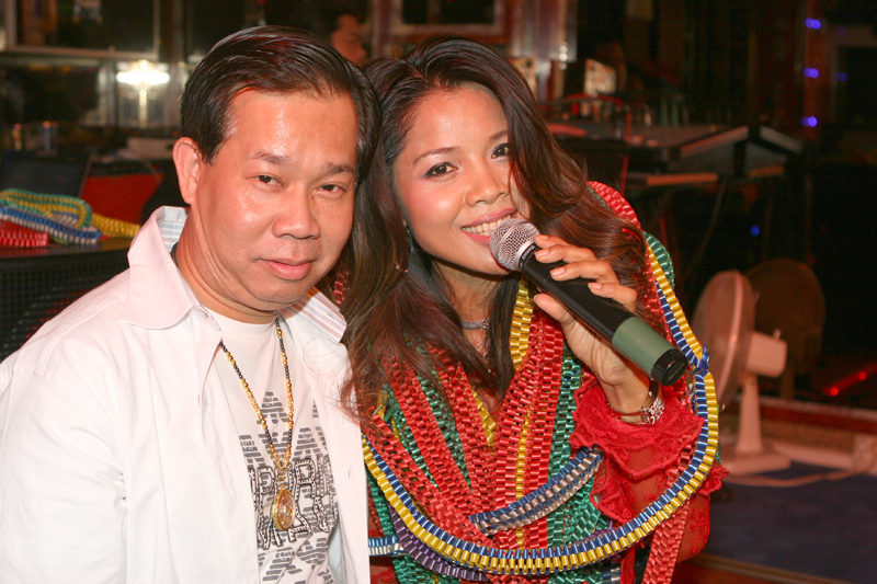 Genau an Sabines Geburtstag am 4. April kam Palaphol nach Pattaya und gab ein zweistündiges Konzert. Der Laden war rappelvoll. Natürlich kam er nicht wegen Sabine, aber was für ein glücklicher Zufall, wo doch der Starsänger einer der Lieblinge der schlanken Rothaarigen ist. Der 36-jährige Star hat in Bangkok seine Zelte aufgeschlagen. Folk-Rock-Musik ist sein Thema. Sieben CDs hat er produziert. Obwohl er schon lange im Geschäft ist, oder vielleicht gerade deshalb, steht Palaphol (die Thais sagen Palaphon, die Schreibweise Palaphol ist aber richtig) immer noch hoch im Kurs, in der Beliebtheitsskala ganz oben. Bei Sabine auch, die glitzernden Augen sprachen Bände, platonisch natürlich.