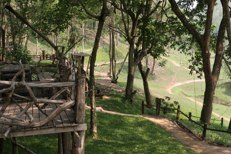 Das Hühnchen ist ebenfalls auf besondere Art zubereitet. Der Koch nehme ein Suppenhuhn und koche selbiges in einem halben Liter Coca-Cola. Dazu kommen zwei Kellen Fischsoße und eine Tüte Instant Pulver (Rotdee). Etwa eine Stunde köcheln und fertig. Wer sich so etwas ausdenkt, keine Ahnung, aber hmmm. Wenn nur die lange Anreise vom Korat hierher nicht wäre. Hitze, Hitze, Hitze. Die Schweißschicht auf Stirn und Oberkörper wird immer dicker, die Augen immer kleiner. Die Gedanken sehnen sich nach dem Land der Träume...