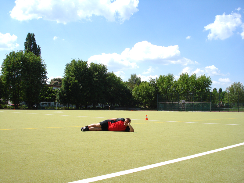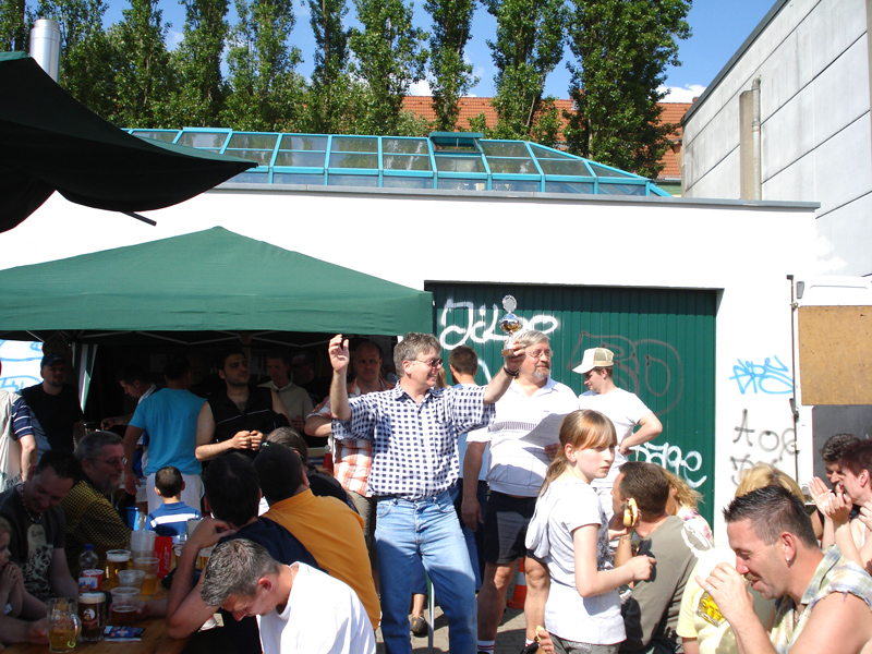 Denn die THAIGER werden immer aktiver. Kurz vor der Hallenturnier-Teilnahme Ende Mai wurden wir zu einem Kleinfeldturnier am Pfingstsonntag eingeladen. Als Fanblock trat Willi in Erscheinung, trotz lädiertem Knie. Der Brave war von Steglitz bis Wedding mit dem Rad gefahren um uns anzufeuern. Kurz vor dem Ziel musste er auf die Nase fallen. Fans leiden immer mehr, als die Spieler... Und auch der lang vermisste Ulti tauchte mit den Kids wieder auf.