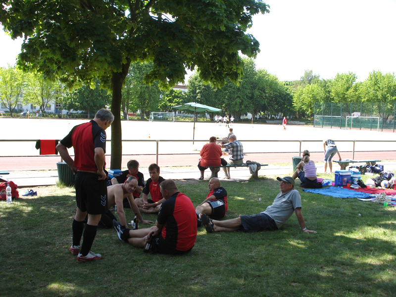 Die THAIGER schlugen sich recht wacker und konnten im ersten Spiel des Turniers sogar als Sieger gegen den Veranstalter SG Waidmannslust stolz vom Platz gehen. Danach zollte man der Hitze und dem fortgeschrittenen Alter Tribut. Wie heißt es doch so schön: Dabei sein ist alles. Platz 8 von 10. Als älteste Mannschaft bei diesem Turnier und das erste Mal ein Kleinfeldspiel bestritten zu haben, das war schon was!