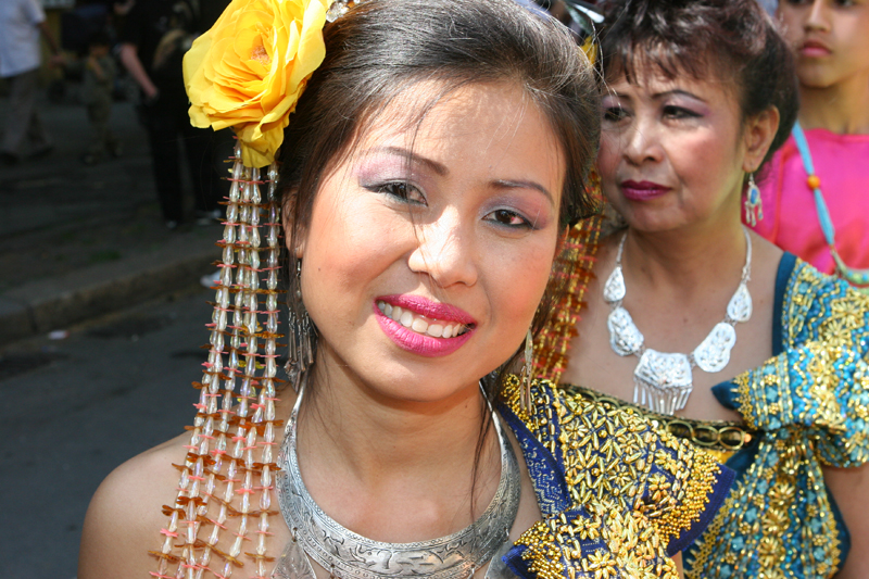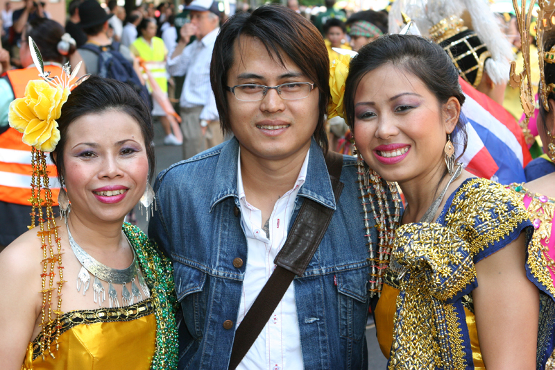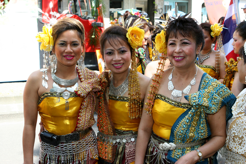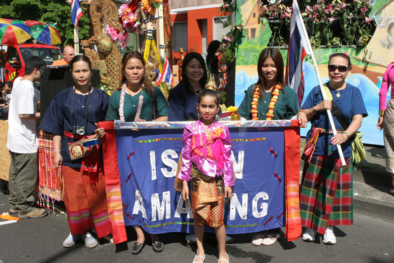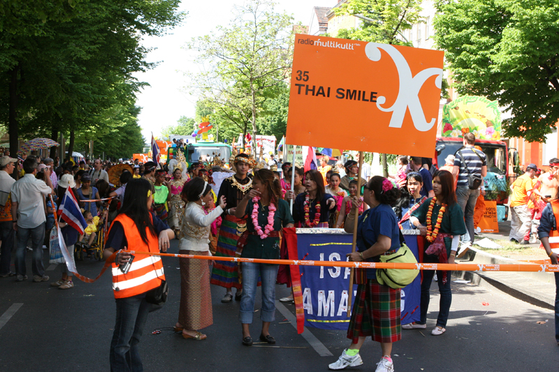 Die Berliner Thailänder nahmen zum dritten Mal an dem Umzug teil. Zur Erinnerung: In 2006 haben sie auf Anhieb den ersten Platz im Wettbewerb belegt. In diesem Jahr startete die Formation THAI SMILE ebenso freudig und gut vorbereitet. Unter dem Motto "Isaan Amazing" war thematisch der Nordosten Thailands der Schwerpunkt - was sich in den Kostümen der Tänzerinnen, in den Trachten des Isaan und vor allen in der Mo Lam Musik und den entsprechenden Tänzen widerspiegelte. Leider fehlte heuer die große Zahl der thailändischen Studenten mit ihren Musikinstrumenten.