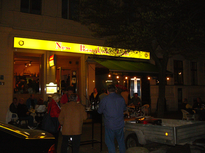 Am 26. April, nahe dem Mehringdamm, in der Hagelberger Straße 57 fand dann auch eine zünftige Jubiläums-Party statt. Gut besucht von den vielen Stammgästen, die Dia auch von der Sonnenallee hierher gefolgt sind. Allen voran die nette Krisana mit Gatten, dann Meau, Porni und auch Kek.