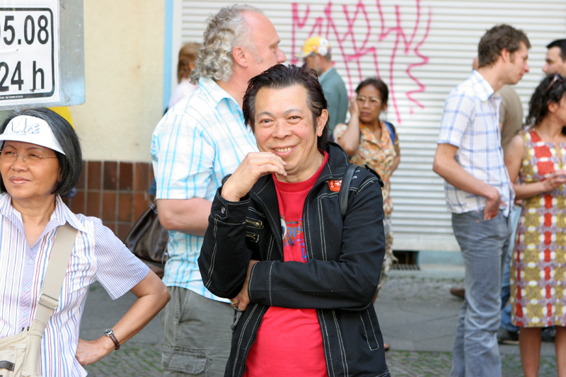 Peter alias Bombe vom New Bangkok Café in der Hagelberger Straße nahe dem Mehringdamm hält sich wacker. Gerade feierte er mit Dia den zweiten Jahrestag. Ein bissel sauer war er auf den Autor dieser Zeilen, weil jener nicht zugegen war bei dem Jubiläum, dass doch ganz prächtig gewesen war. Lieber Peter, es ging wirklich nicht. Die Zeitung musste fertig werden. Es war am Monatsende, kurz vor der Abgabe an den Drucker. Da ist keine Zeit, auch keine 10 Minuten, die ja mit dem Zweirad immer 2 Stunden bedeuten. Ich mach es wieder gut und gebe ein großes Mineralwasser aus! Tja, in kleinen Dingen sind wir großzügig...